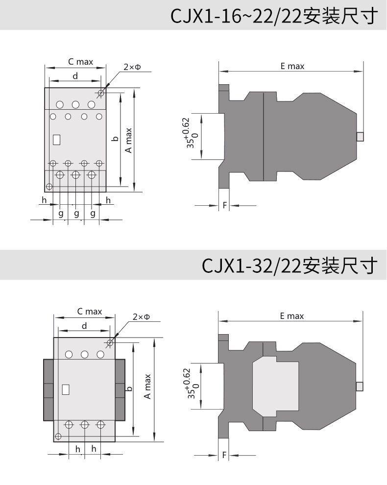 正泰交流接触器单相三相 cjx1-400/22 220v