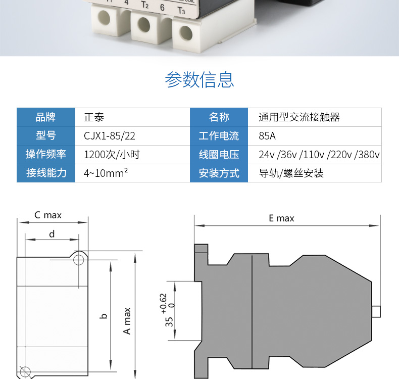正泰交流接触器 CJX1-85/22 85A 380v 220v 110v 36v 24v 220V