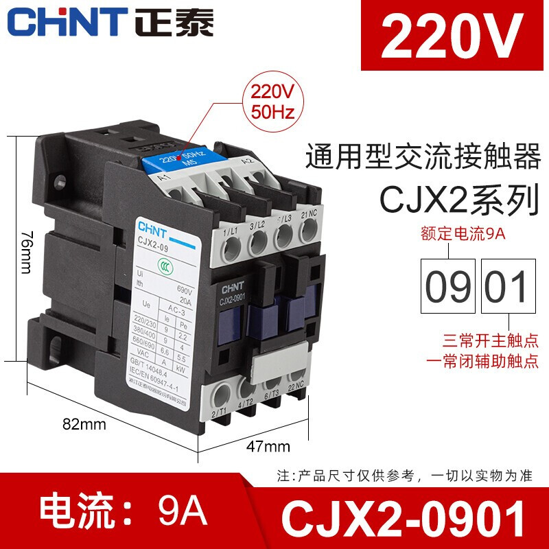 正泰(CHNT)CJX2-0901-220V 交流接触器 9A接触式继电器