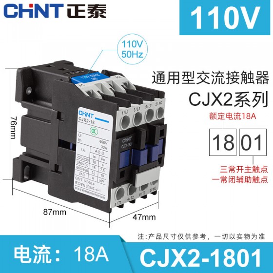 正泰(CHNT)CJX2-1801 110V 交流接触器 18A接触式继电器