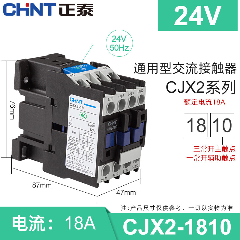 正泰(CHNT)CJX2-1810 24V 交流接触器 18A接触式继电器