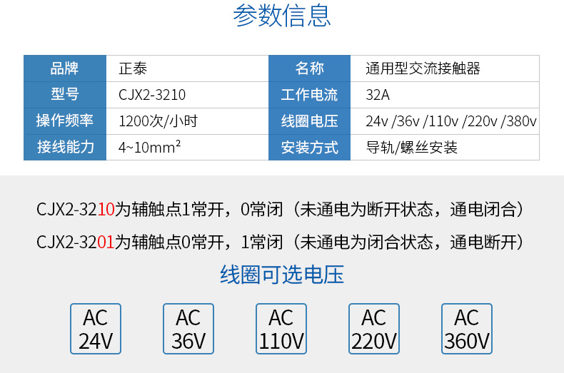 正泰交流接触器CJX2-3201 32A接触式继电器常开 常闭220V 380V等可选 380V 3201