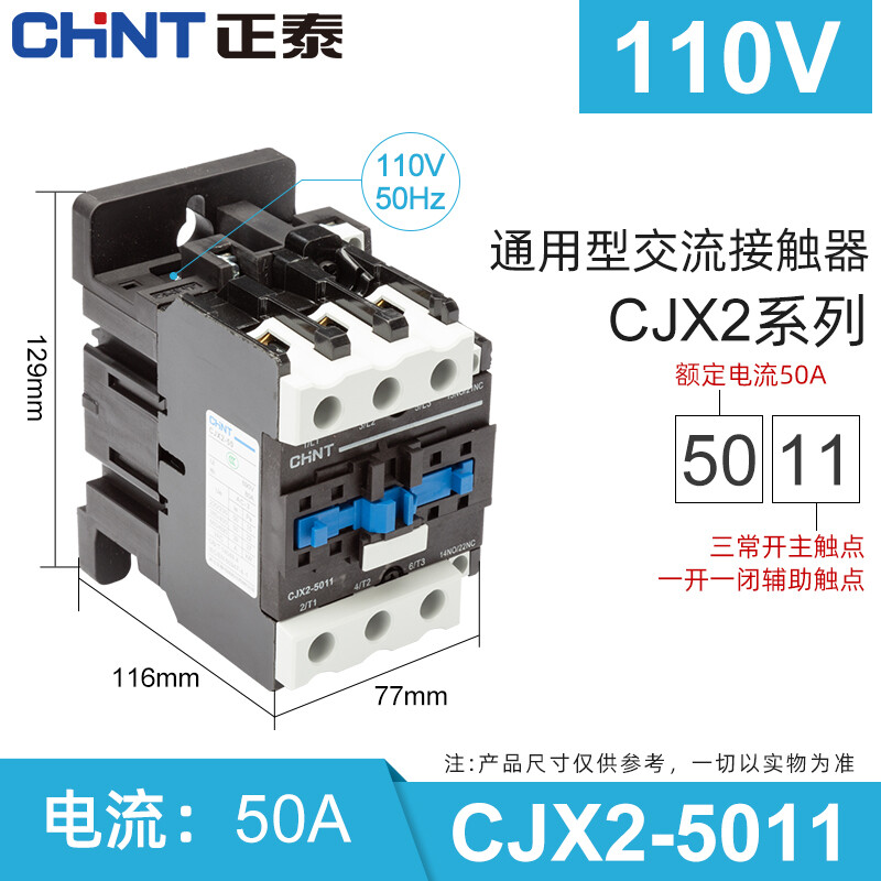 正泰(CHNT)CJX2-5011 110V 交流接触器 50A接触式继电器