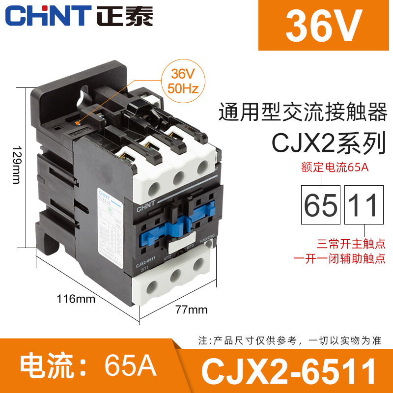 正泰(CHNT)CJX2-6511 36V 交流接触器 65A接触式继电器