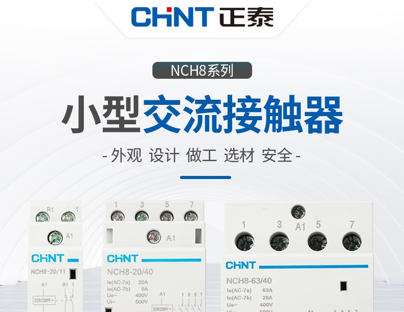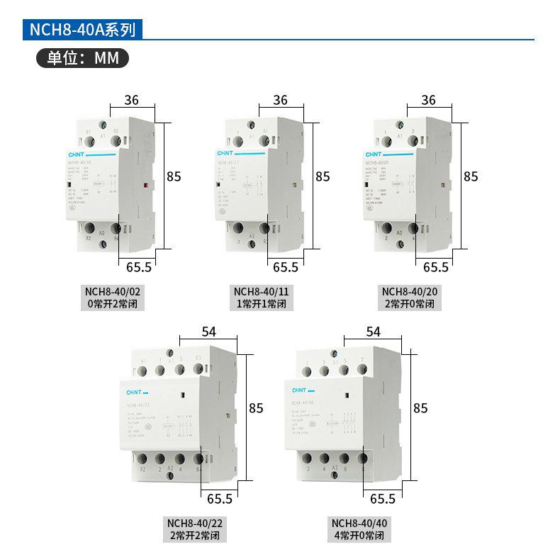 正泰家用小型交流接触器NCH8单相220V导轨式2P/4P/40A63a常闭常开 NCH8-63/20