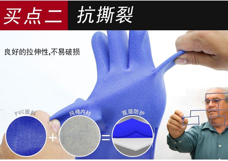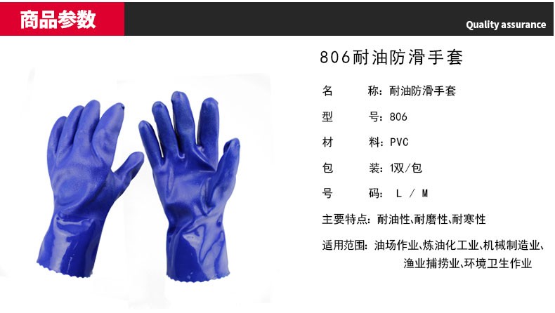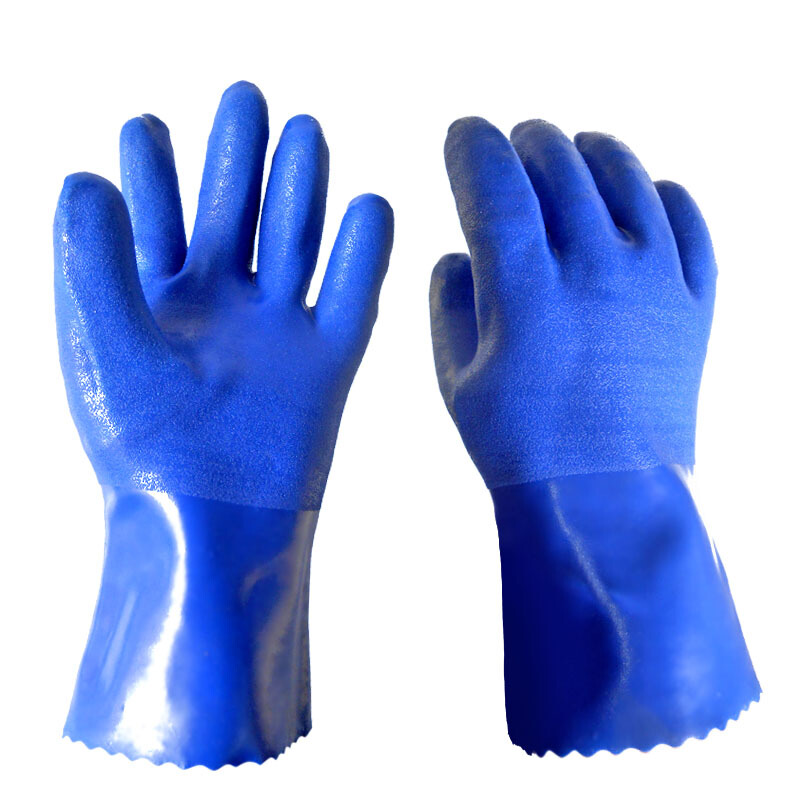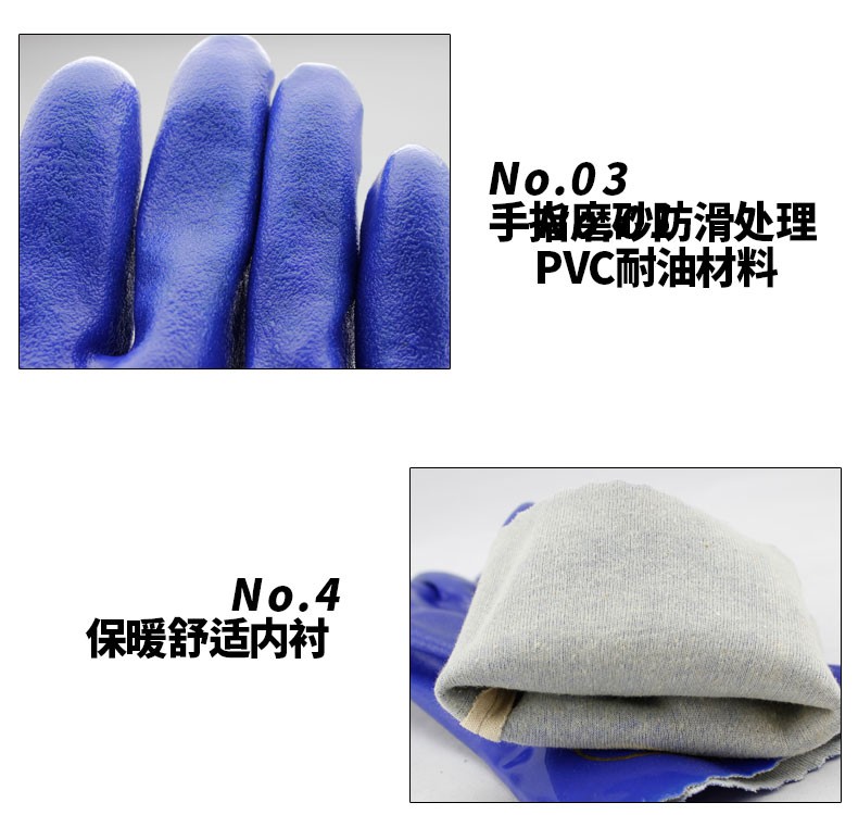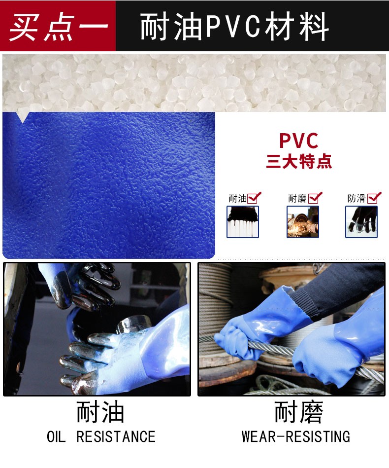 耐油手套防护防滑PVC安全机械防油耐磨666手套加厚工业 蓝色 M