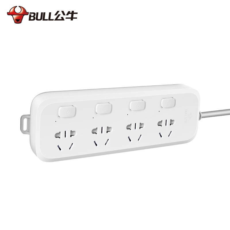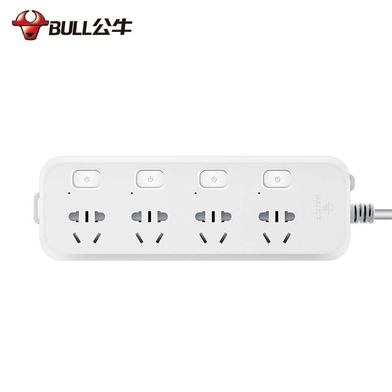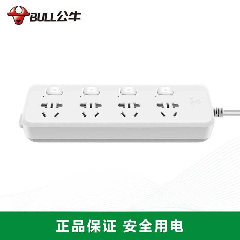 公牛(BULL)插座短线插排新国标插座多功能排插电源接线板三脚插线板一米0.5m插板带线拖线板 GN-B5043 分控开关 4插位全长1米