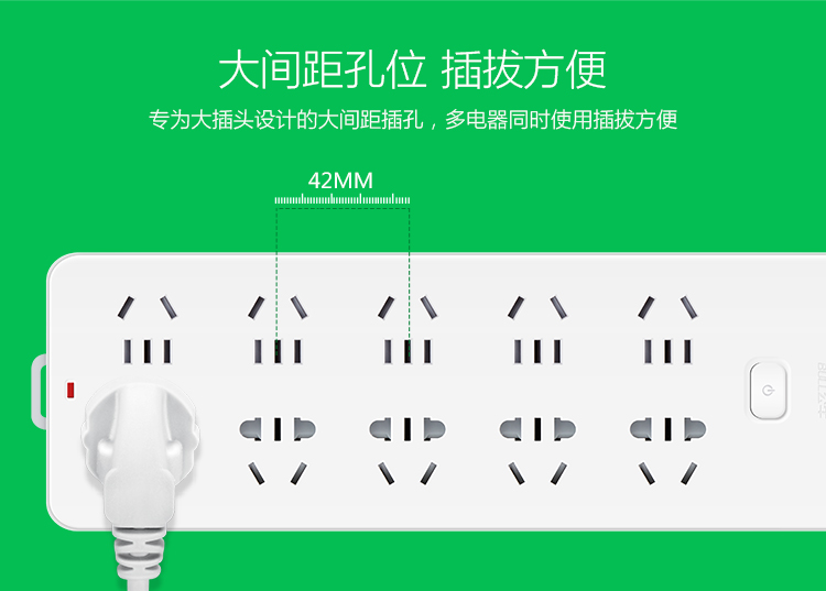 公牛(BULL) 超功率过载保护 新国标插座/插线板/插排/排插/接线板/拖线板 GN-604 8位总控全长3米