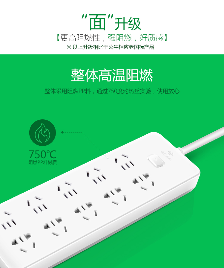 公牛(BULL) 超功率过载保护 新国标插座/插线板/插排/排插/接线板/拖线板 GN-312 5位分控全长3米