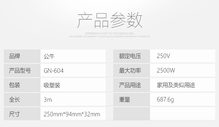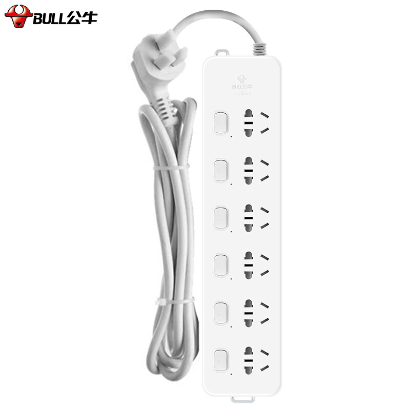 公牛(BULL) 超功率过载保护 新国标插座/插线板/插排/排插/接线板/拖线板 GN-313 6位分控全长3米