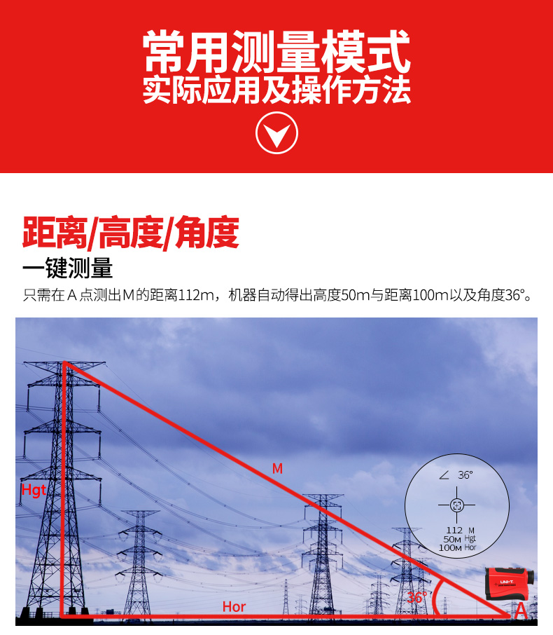 优利德望远镜测距仪高精度激光测距仪测高测角测速测量仪 LM1000(1000米测距、测高、测角、测速)