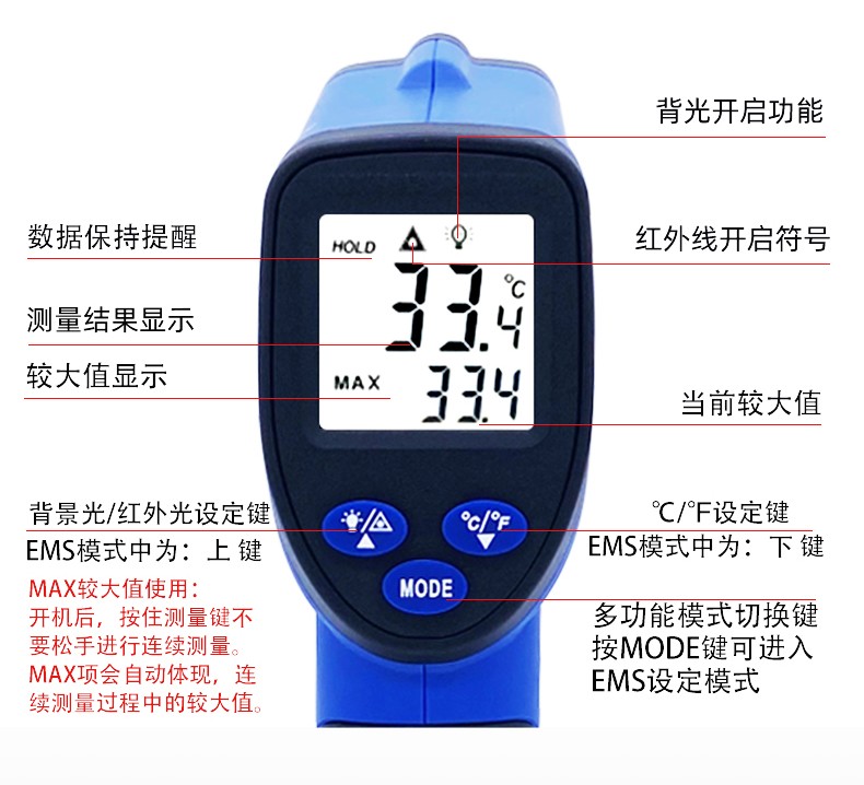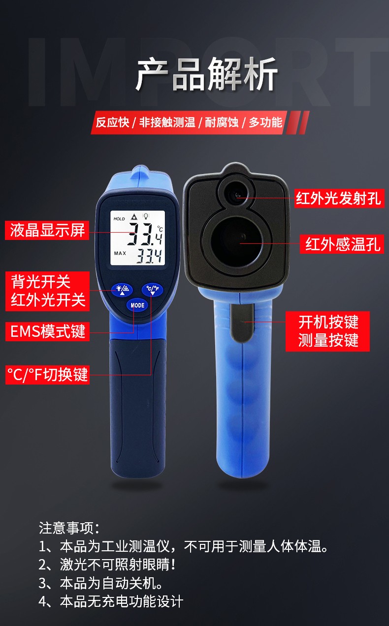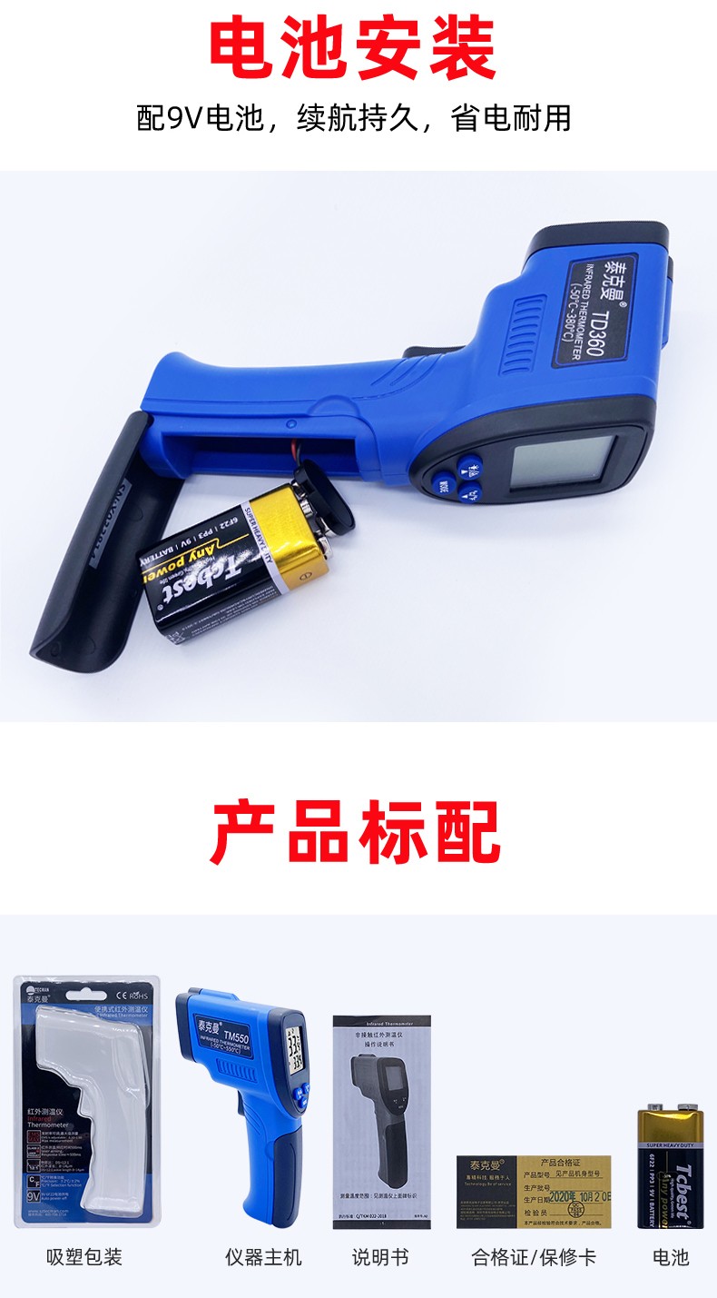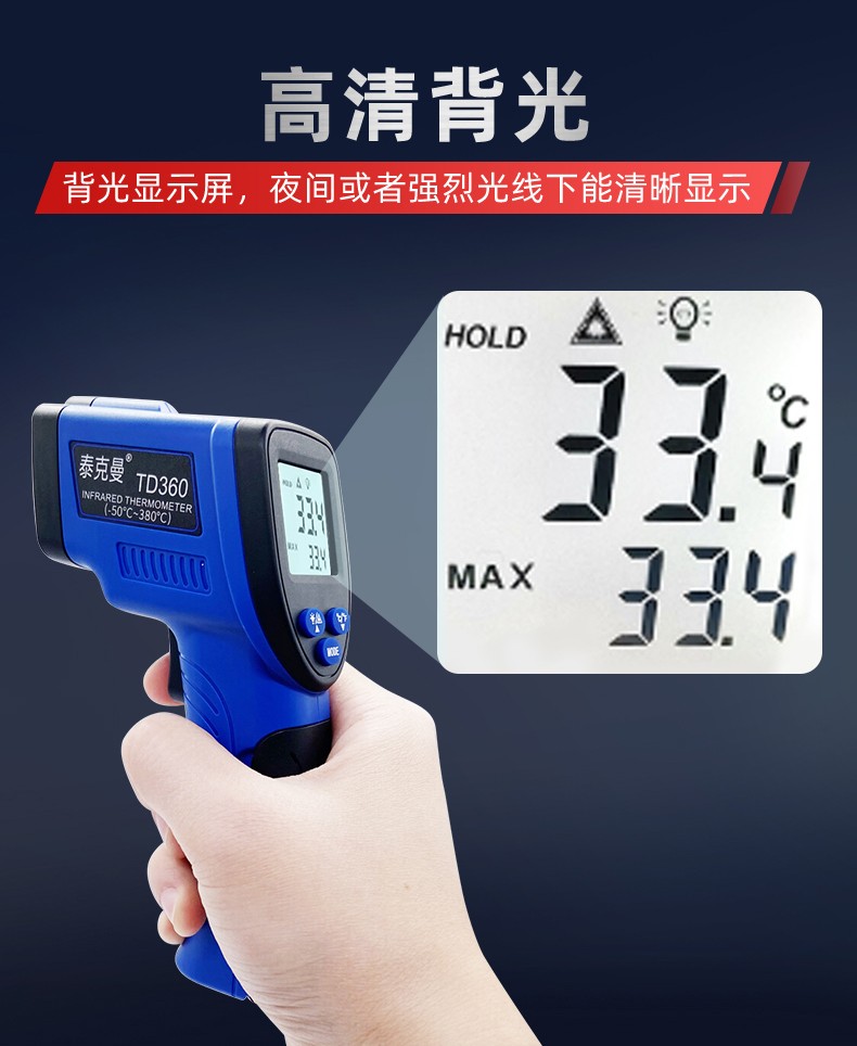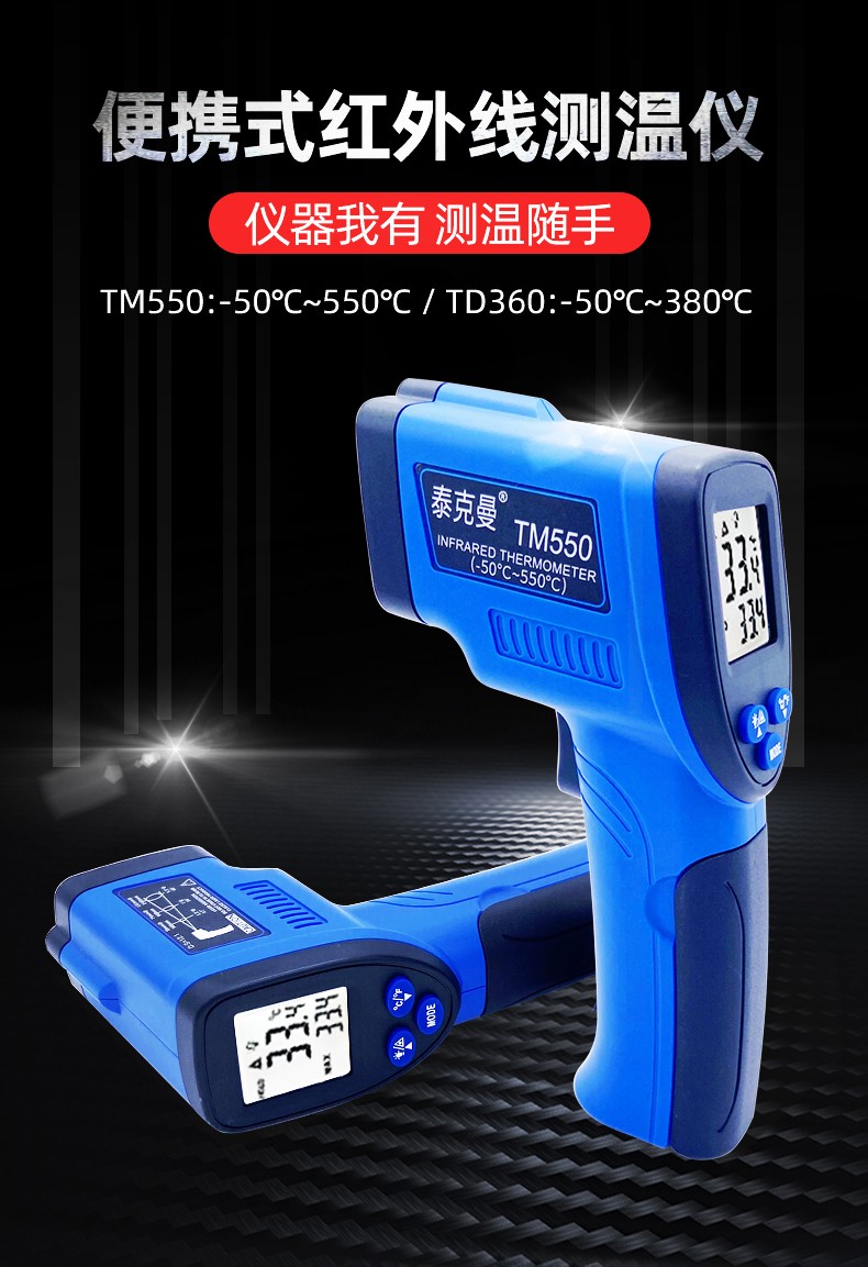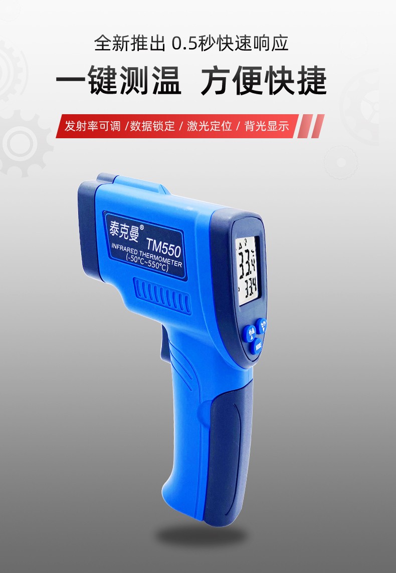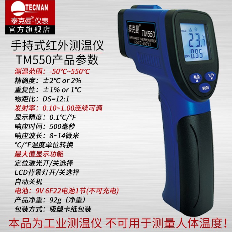 泰克曼手持式红外测温仪工业型红外测温仪红外测温枪温度计红外测温仪红外枪温度表 TM550