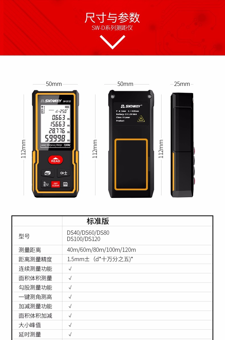 深达威激光测距仪红外线高精度手持量房仪 70米SW-DS70
