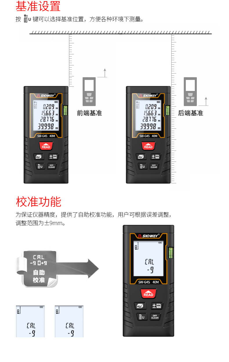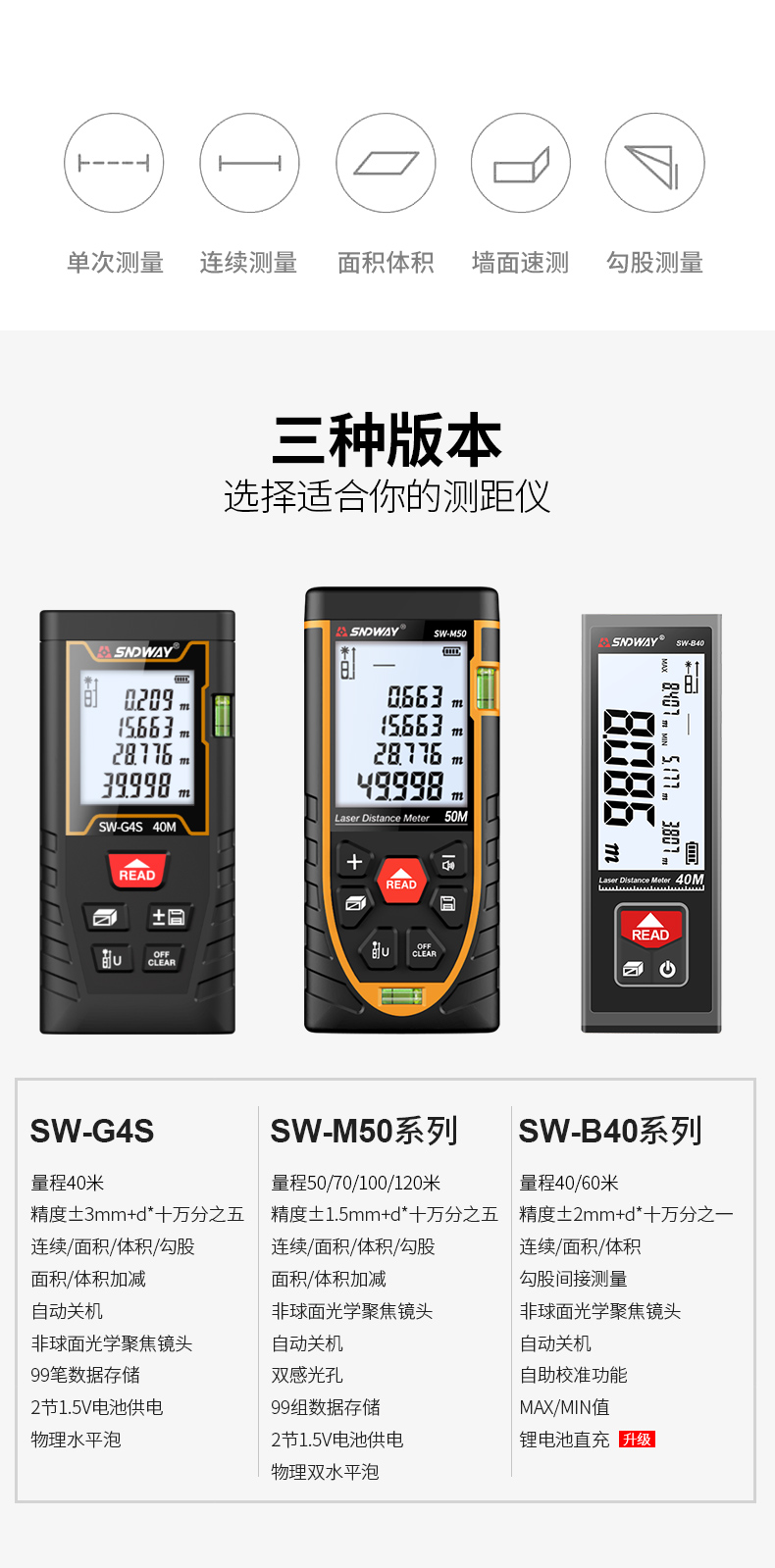 深达威 激光测距仪 手持式高精准红外线测量仪 电池款室内测距仪 SW-M100(室内款,电池款,量程100米)