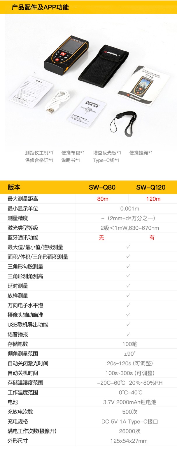 深达威(SNDWAY)室内室外SW-Q80可选手持式高精度红外激光测距仪 80米 SW-Q80(摄像辅助+语音充电)