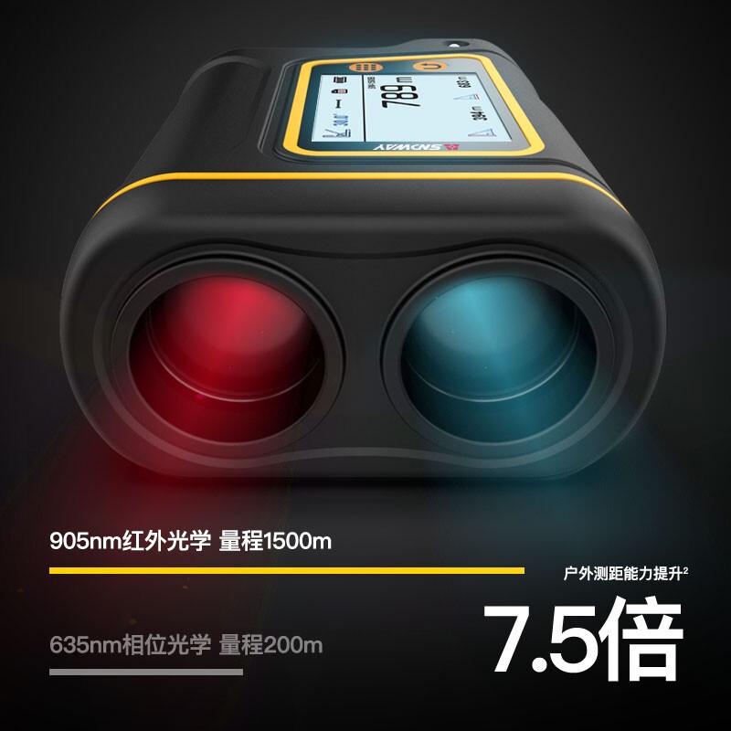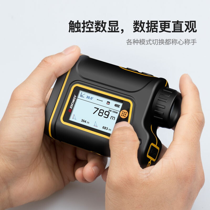 深达威望远镜测距仪户外电子尺高精度红外线手持式高尔夫距离激光测量仪 3~1500米侧屏望远镜测距仪 SW-1500B