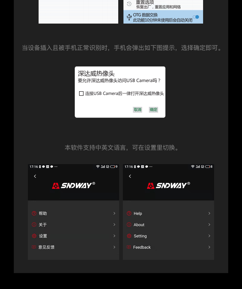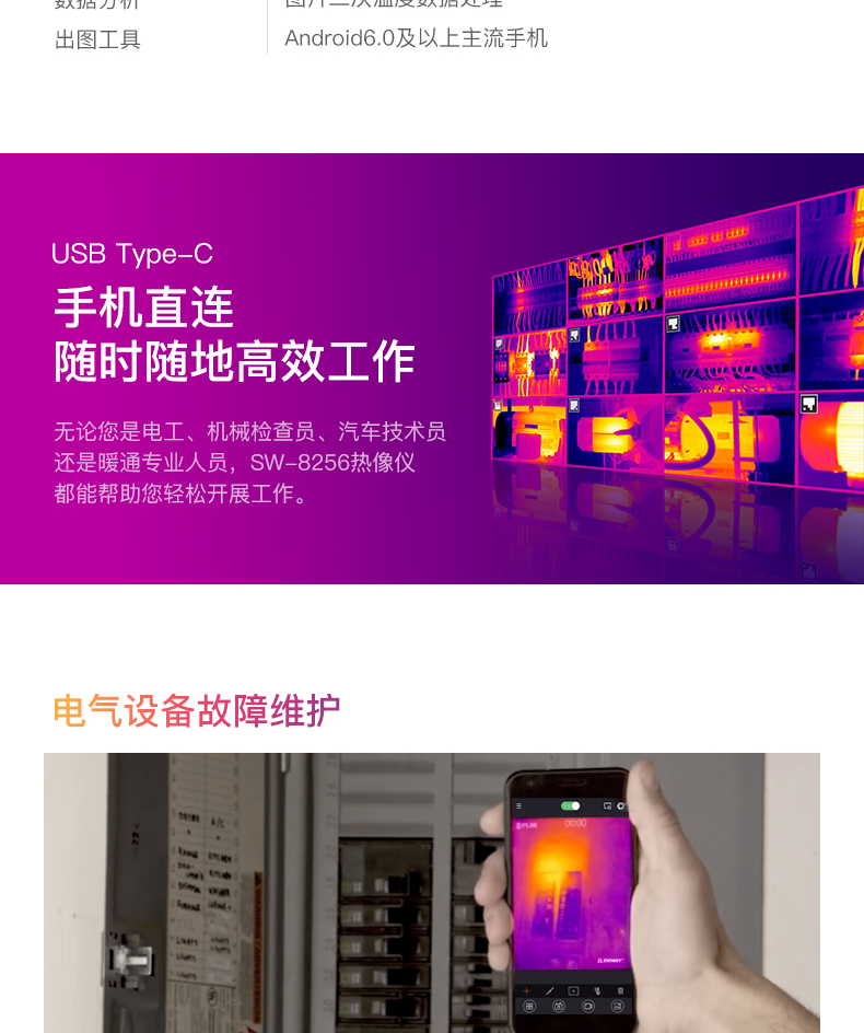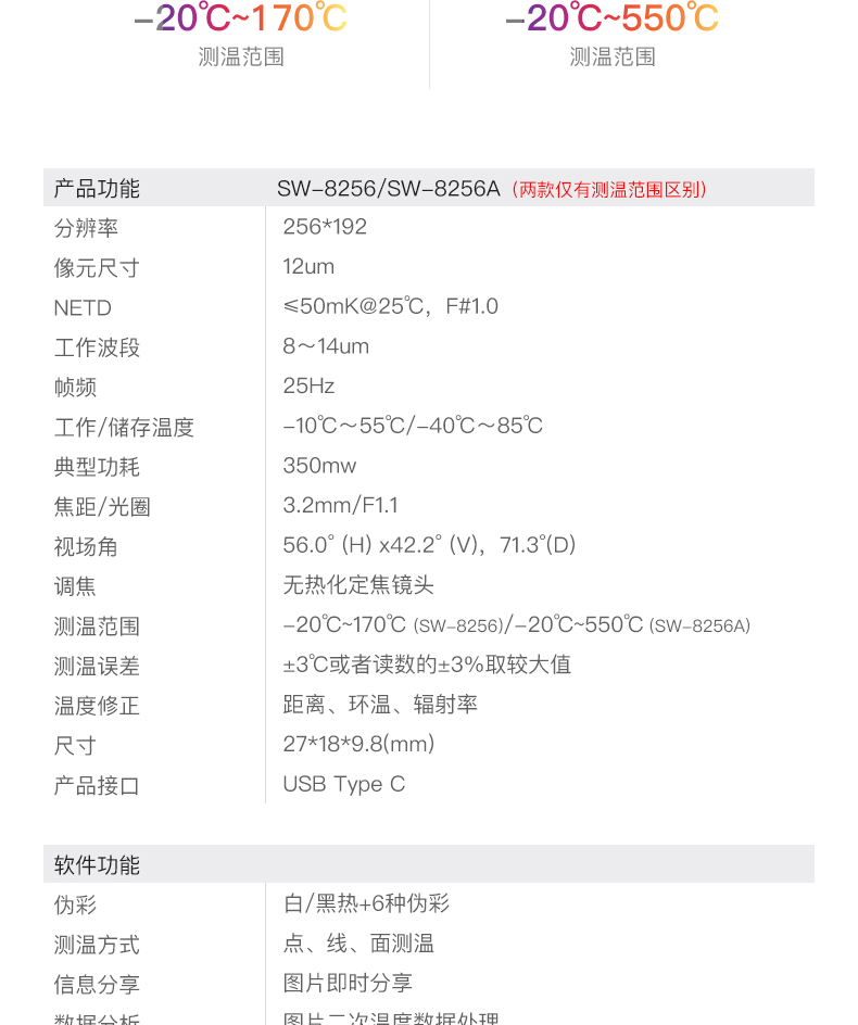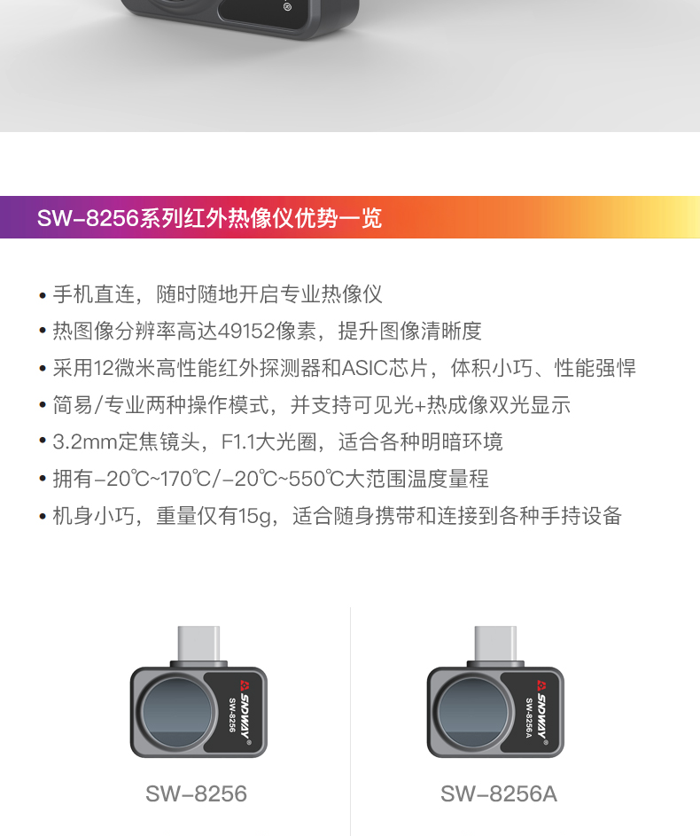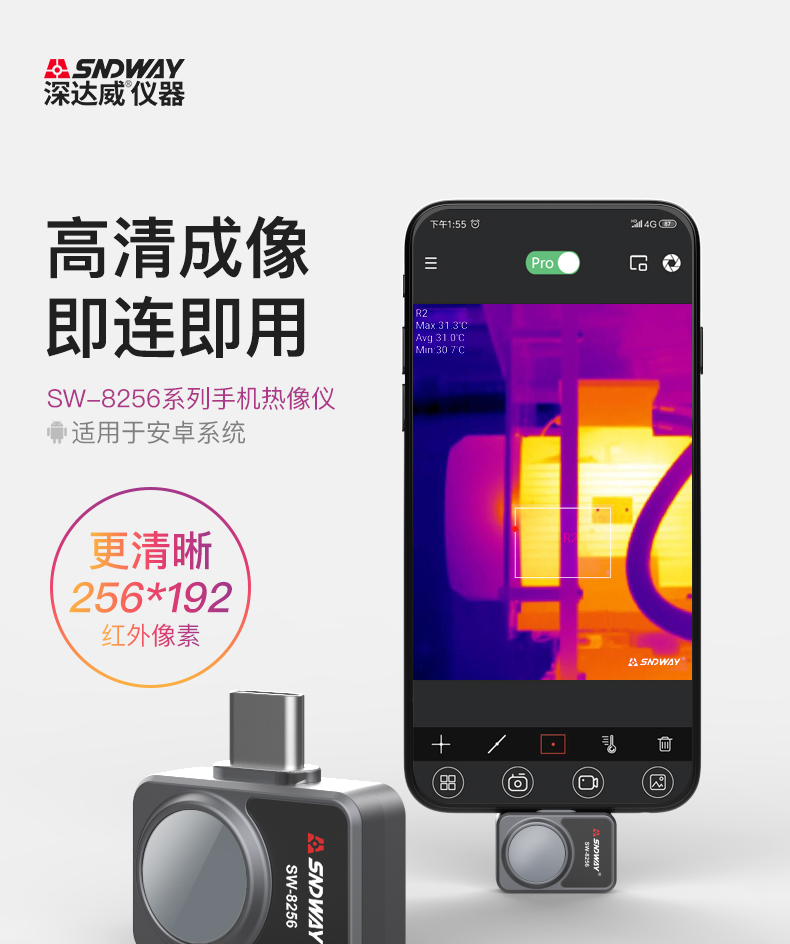 深达威(SNDWAY)手机热成像仪 高清热成像工业测温电力检测安卓版 SW-8256(红外像素256*192)