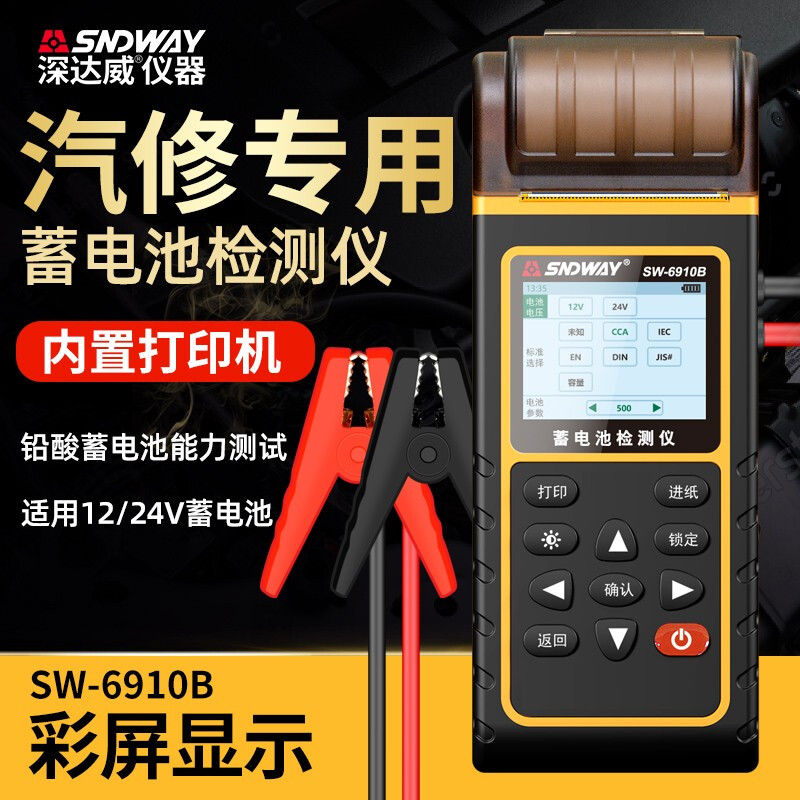 深达威SW-6910B汽车电瓶检测仪蓄电池内阻测试仪电瓶寿命测量表SW-6910B (彩屏带打印)