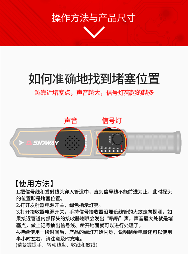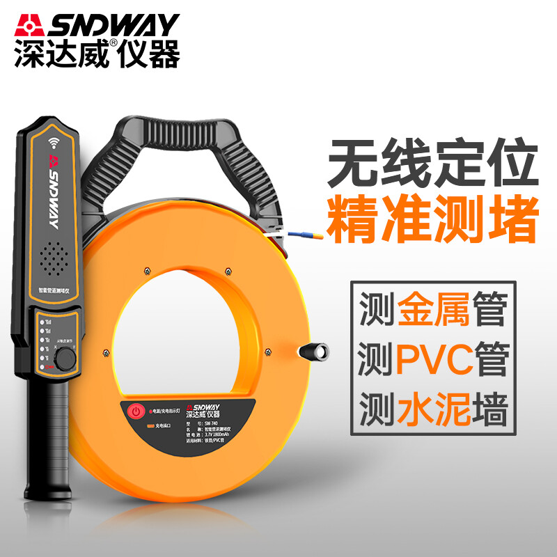 深达威 管道测堵仪 充电式电工墙体PVC管金属管测堵器 电线管堵塞探测仪 SW-720测堵仪(探测线长20米)