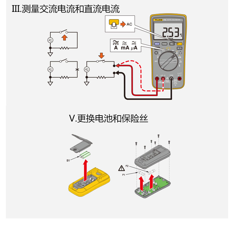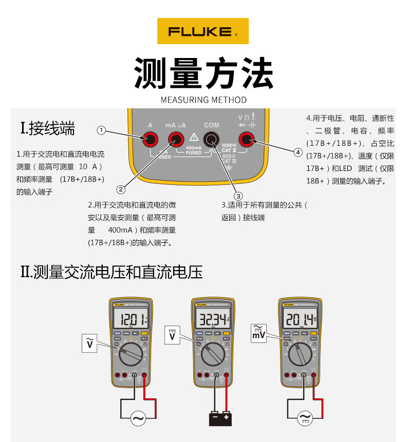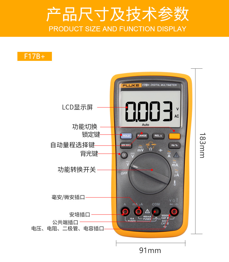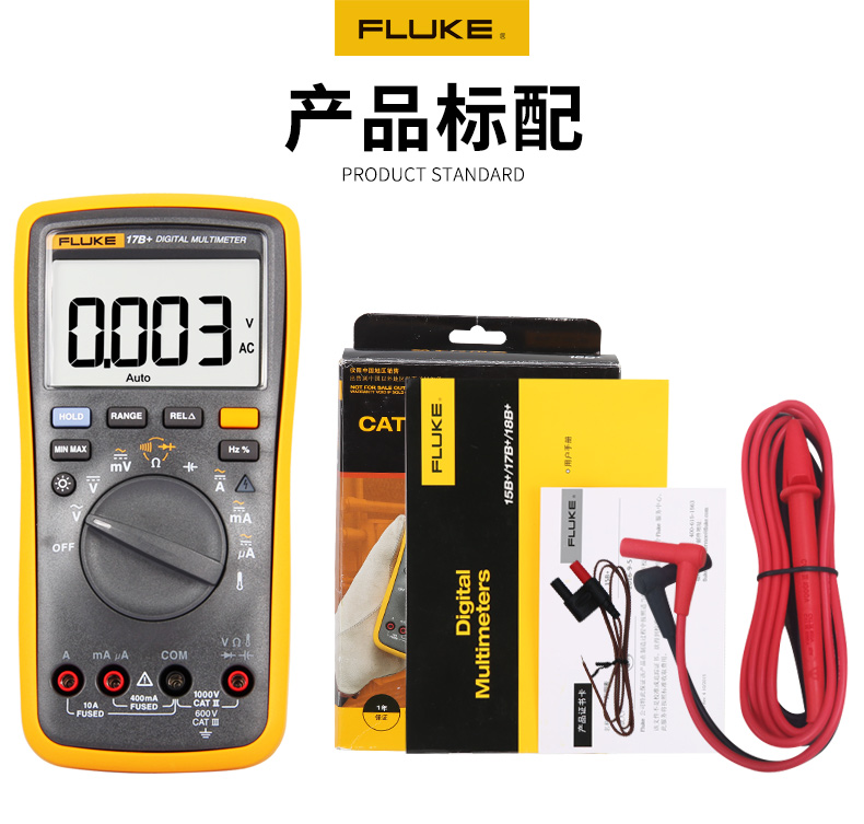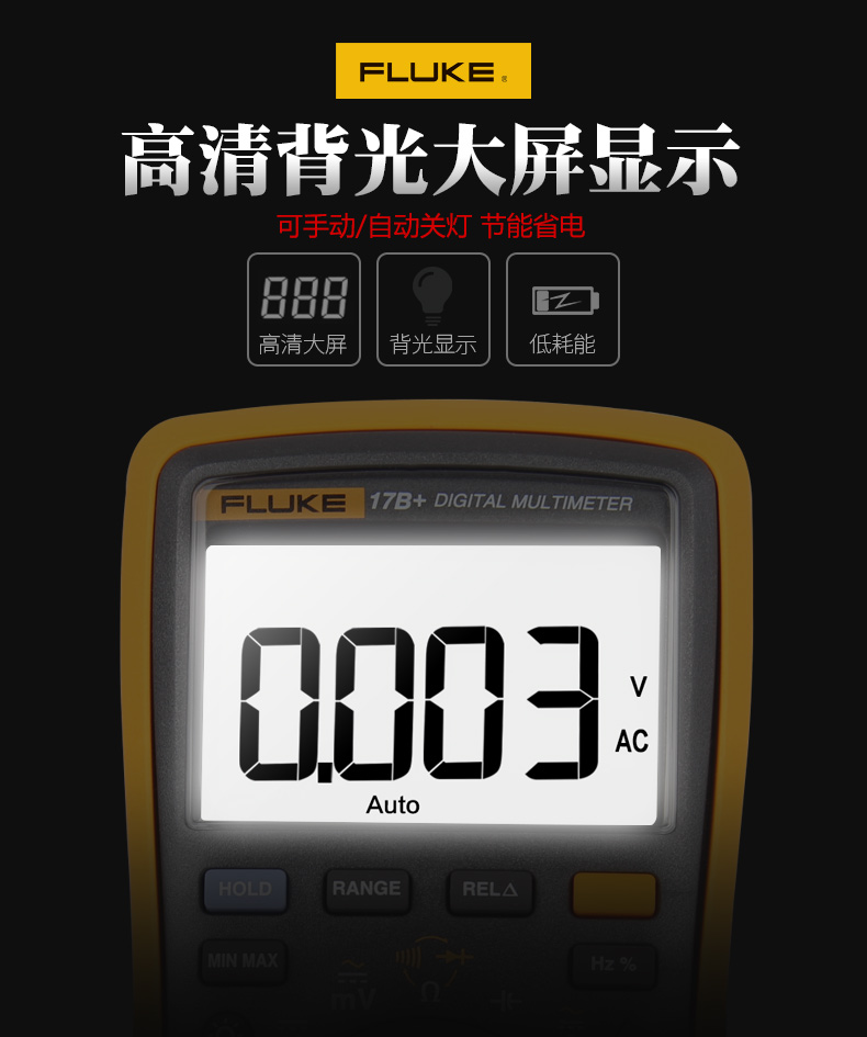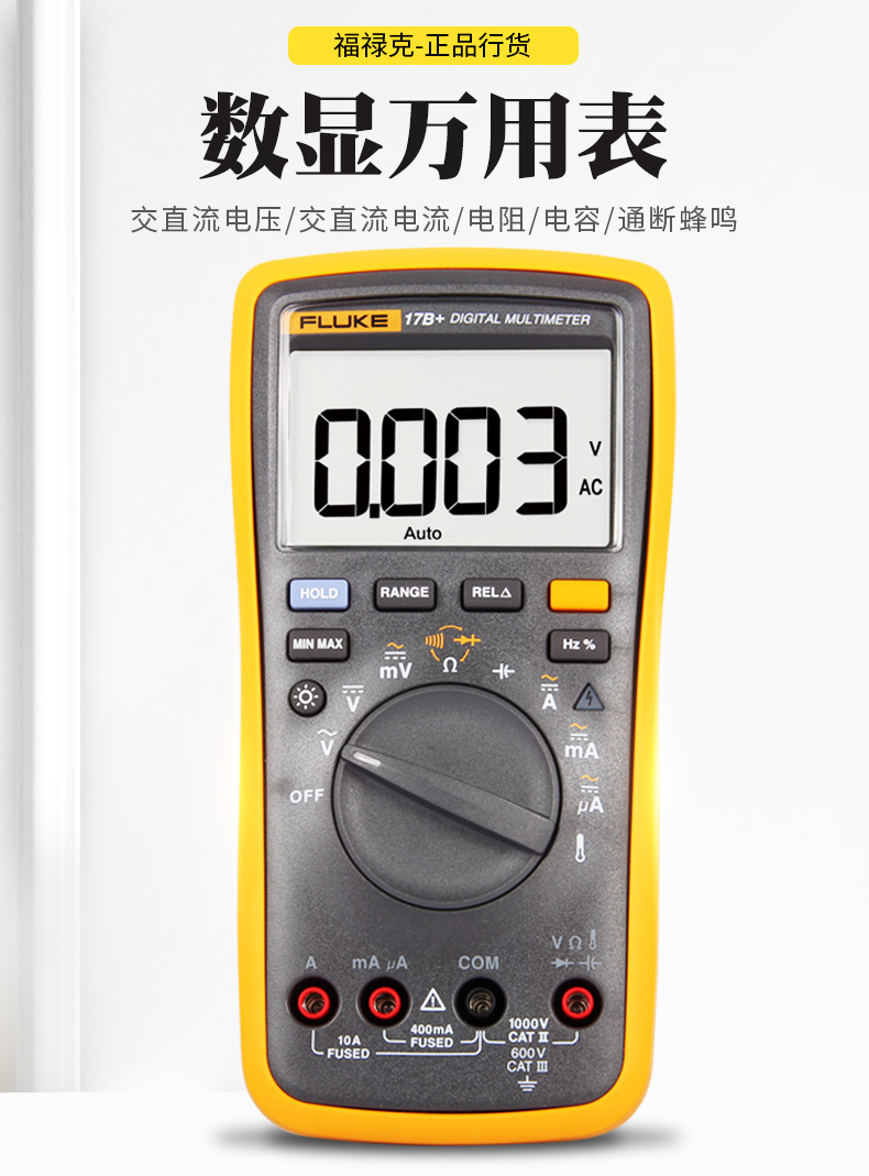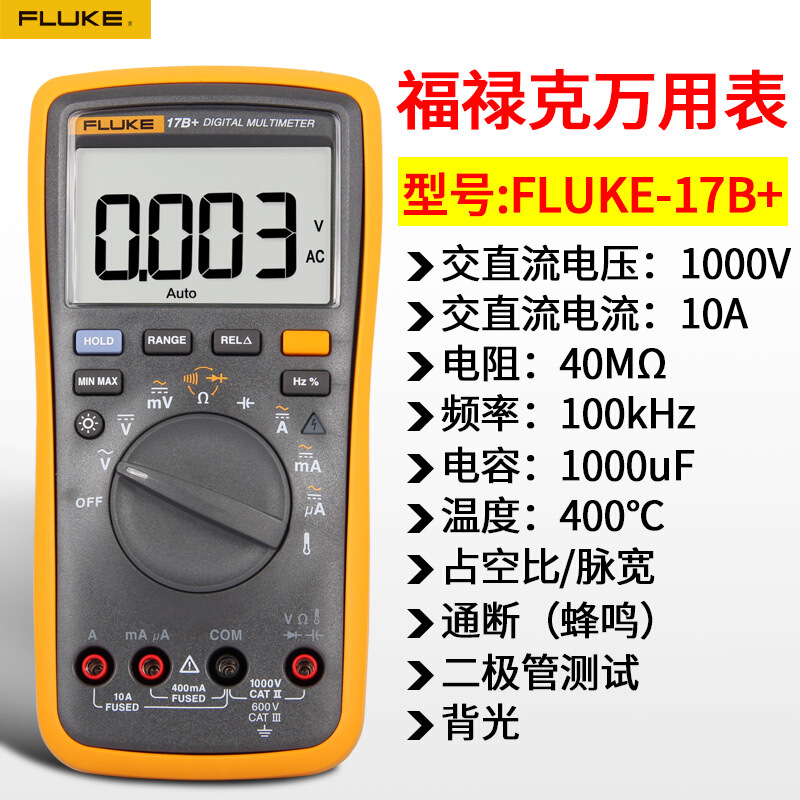 福禄克 (FLUKE) 万用表 数字万能表 F17B+ 高精度掌上型多用表电容频率温度 智能仪器仪表 FLUKE-17B+