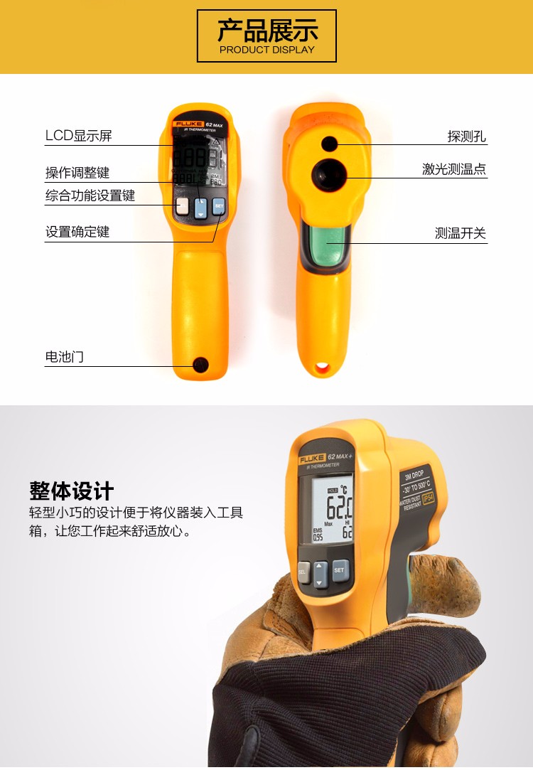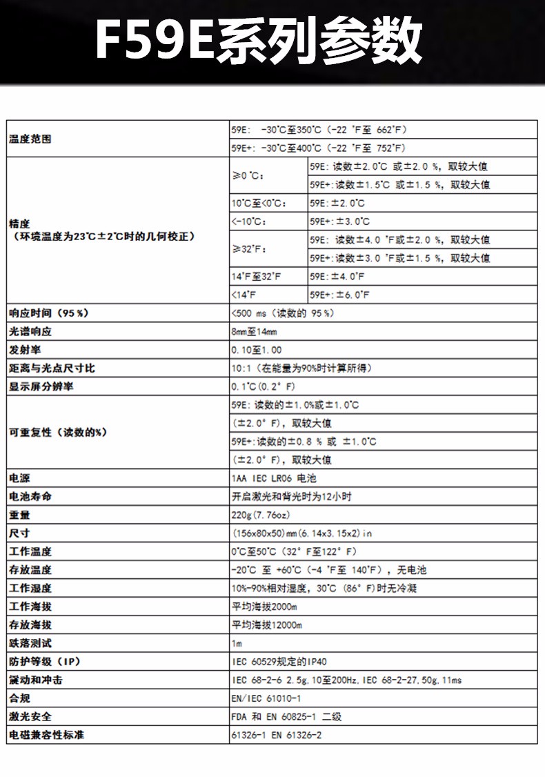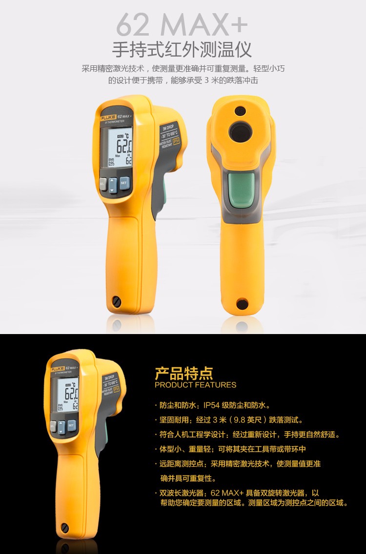 福禄克FLUKE MT4/F62MAX+/F59E高精度非接触工业红外线测温仪电子点温计感温枪 FLUKE59E(-30~350度)