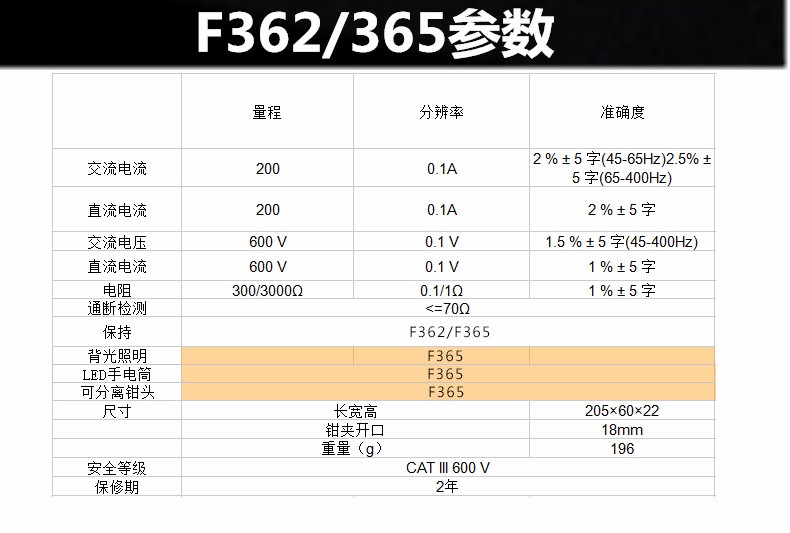 福禄克FLUKE-362系列高精度真有效值钳形表 钳型万能表 F362交直流600V/200A