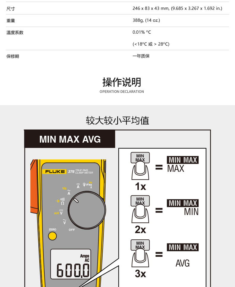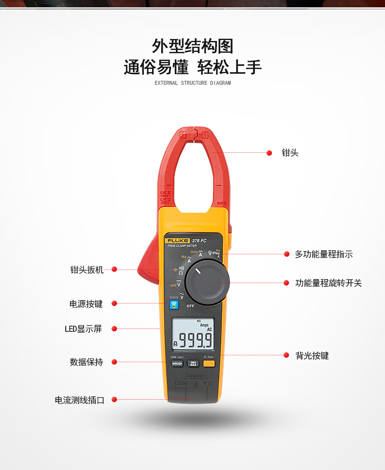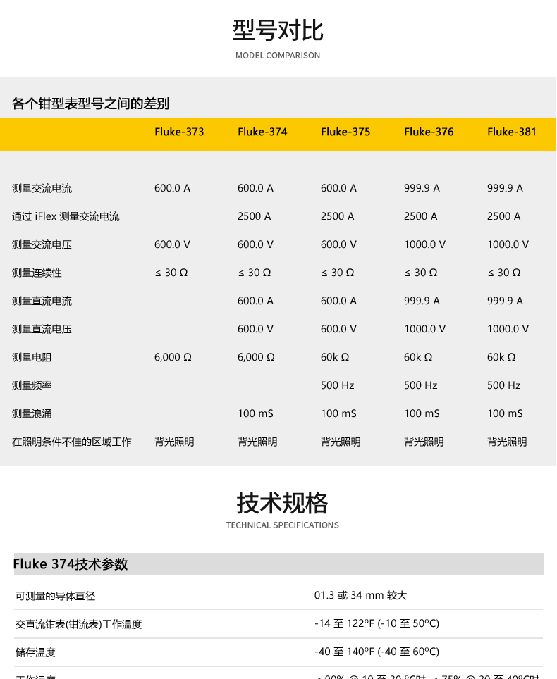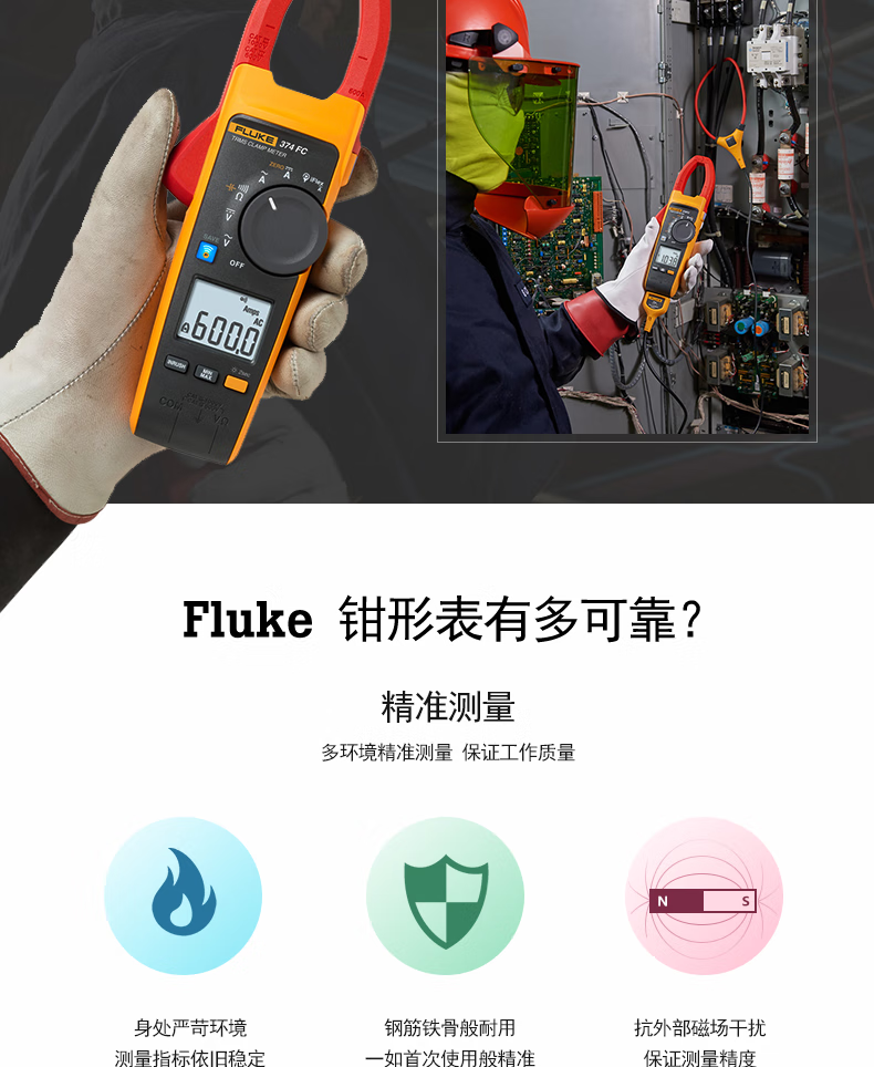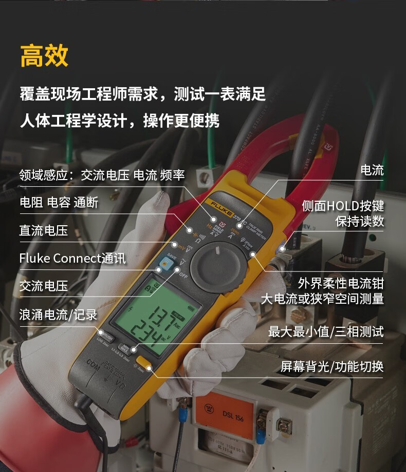 福禄克(FLUKE) 真有效值钳形表F373/374/375/工业级数字钳形电流表万用表交直流万能表 373(交流600A/600V 真有效值)