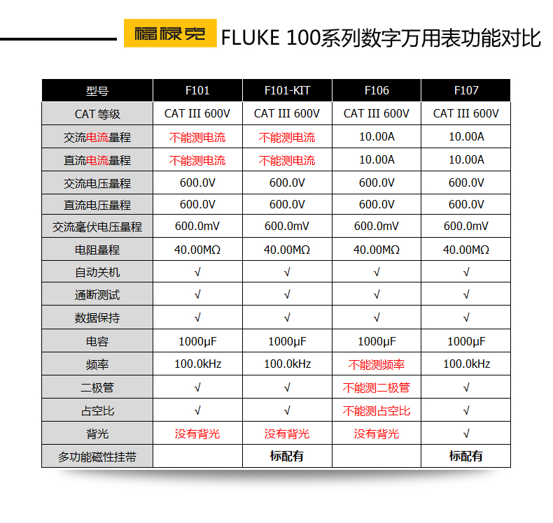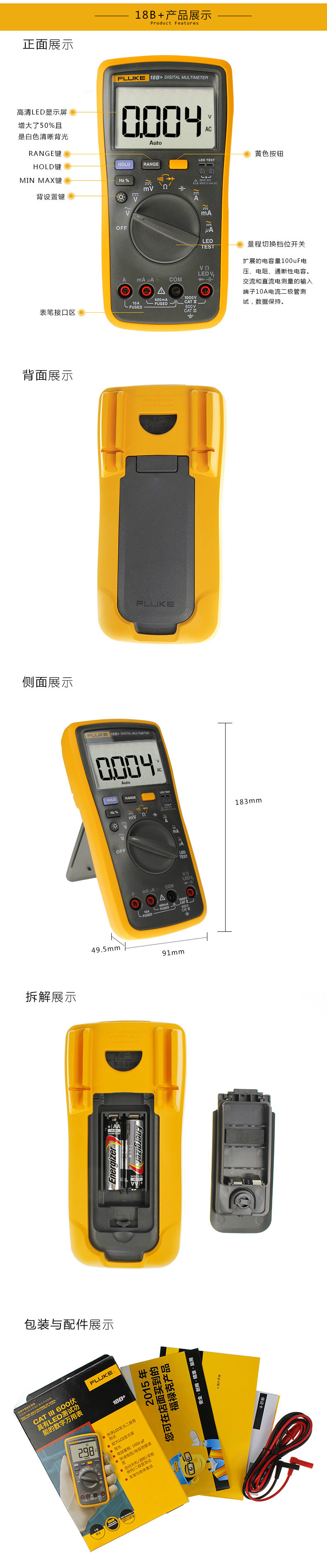 FLUKE美国福禄克 数字万用表 数显式万用表 高精度万用表 数位万能表 FLUKE 80K-40 高压衰减棒40KV