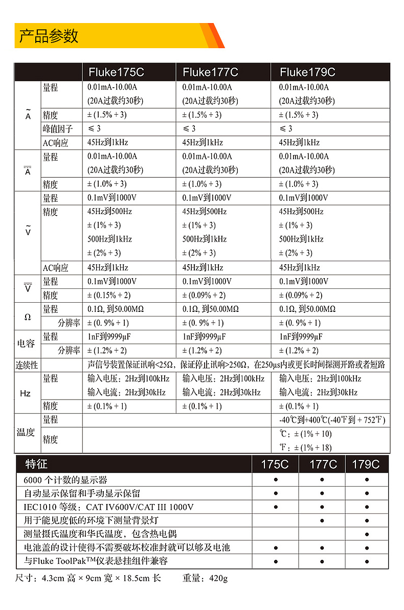 UNI-T优利德 1000A真有效值数字钳形表 UT208B 32cm*15cm*7cm