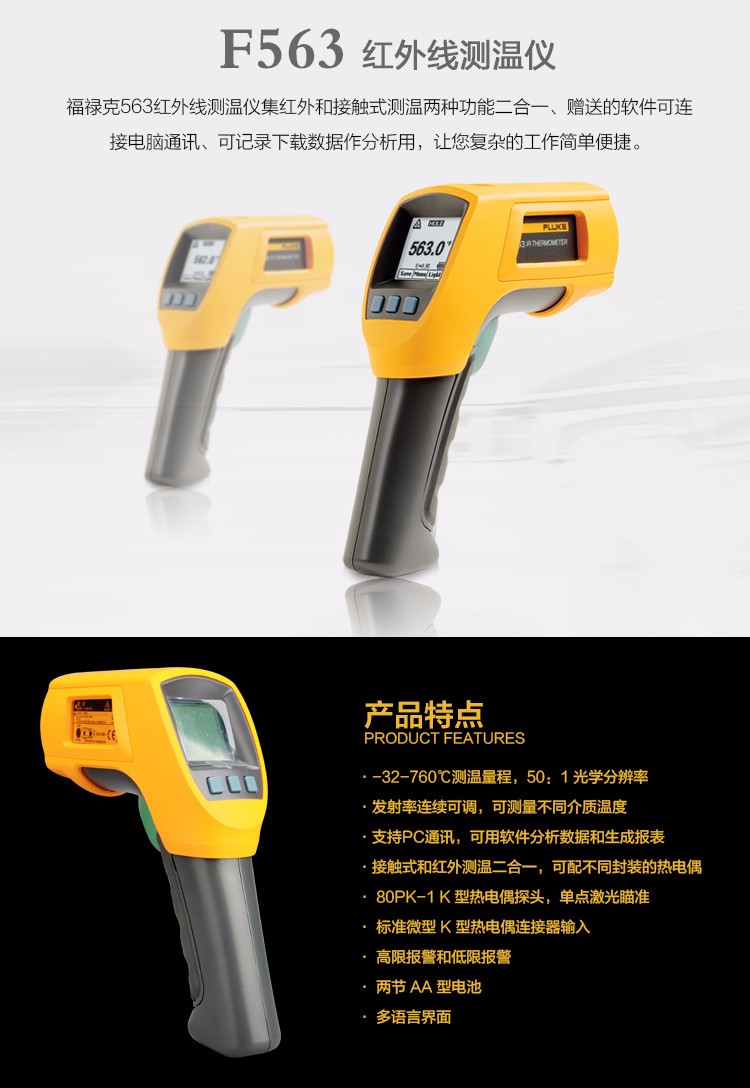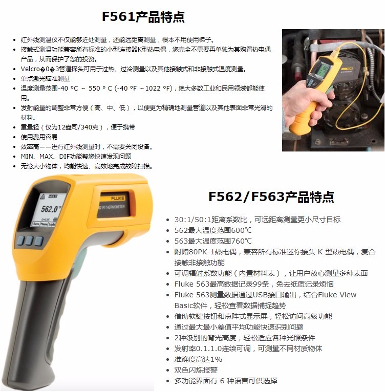 福禄克FLUKE红外线测温仪高精度工业红外测温枪 非接触电子表面温度计 F562测温范围-32~600℃
