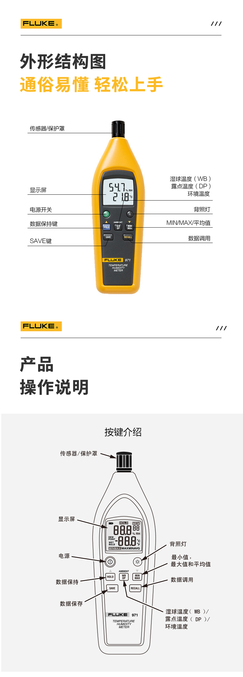 福禄克Fluke 971温度湿度测量仪 F971温湿度计 FLUKE-971
