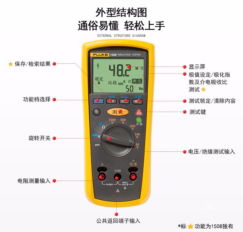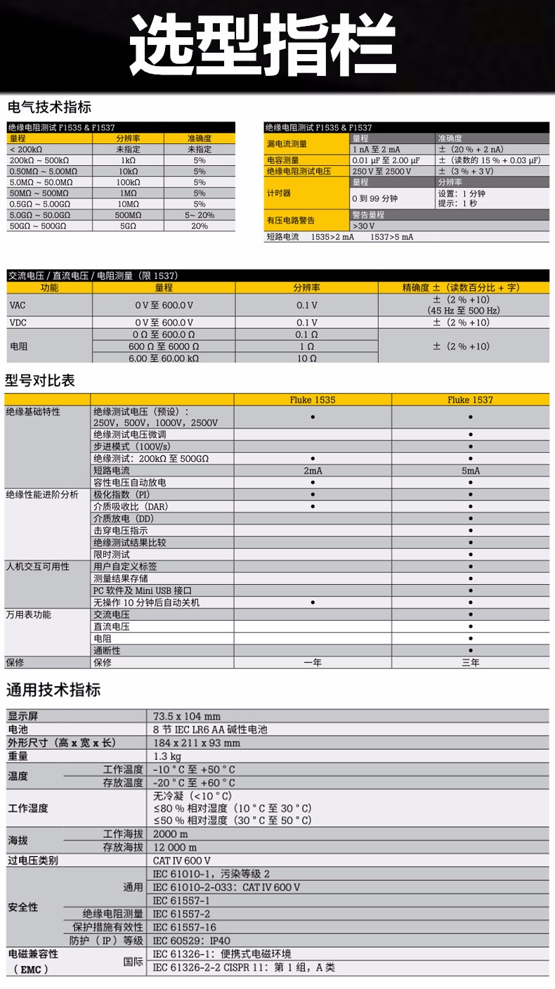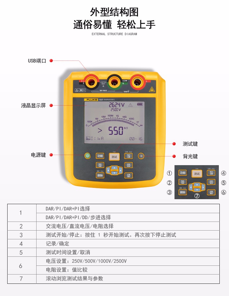 福禄克FLUKE 1503/1508/1535/1537数字高精度绝缘电阻测试仪数字高压兆欧表摇表 FLUKE 1535简称F1535