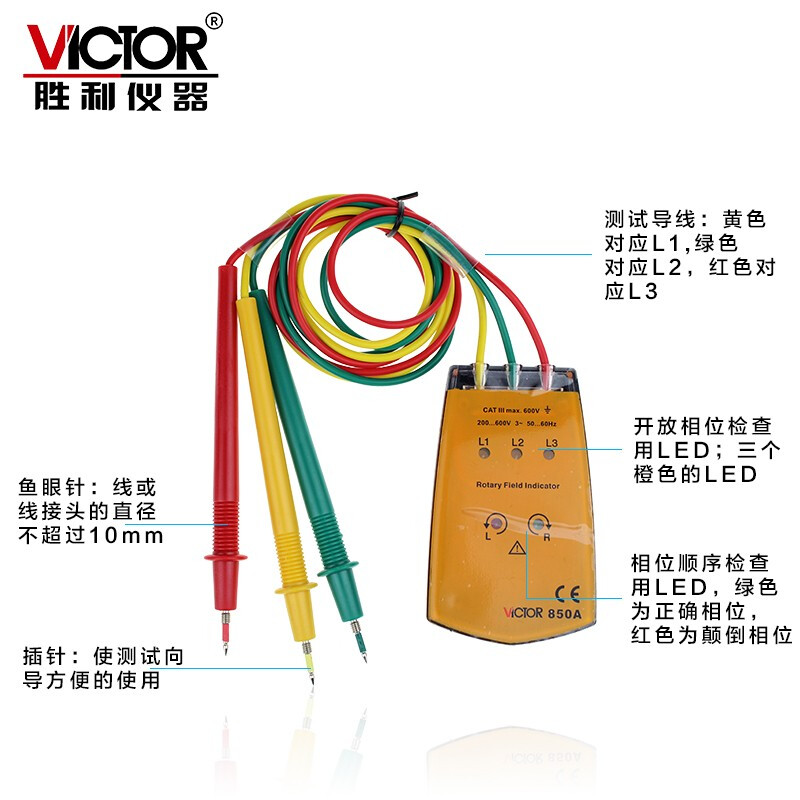 胜利 三相交流电相位计VC850A相序表 相序测试仪 相位表 原装标配 VC850A 相位表