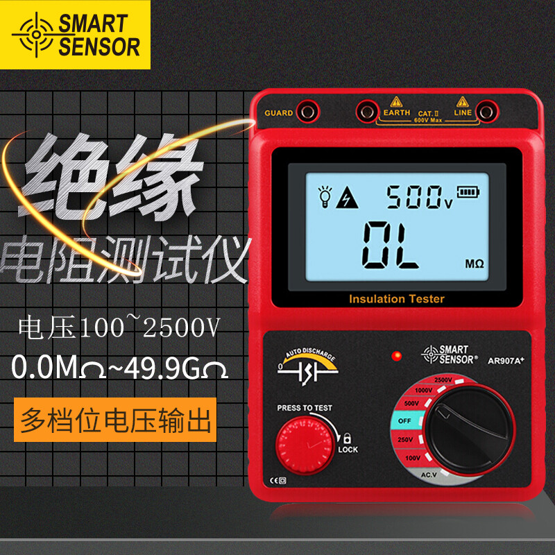 希玛 兆欧表 电子摇表绝缘电阻测试仪数字绝缘电阻表(测试电压2500V)AR907A+