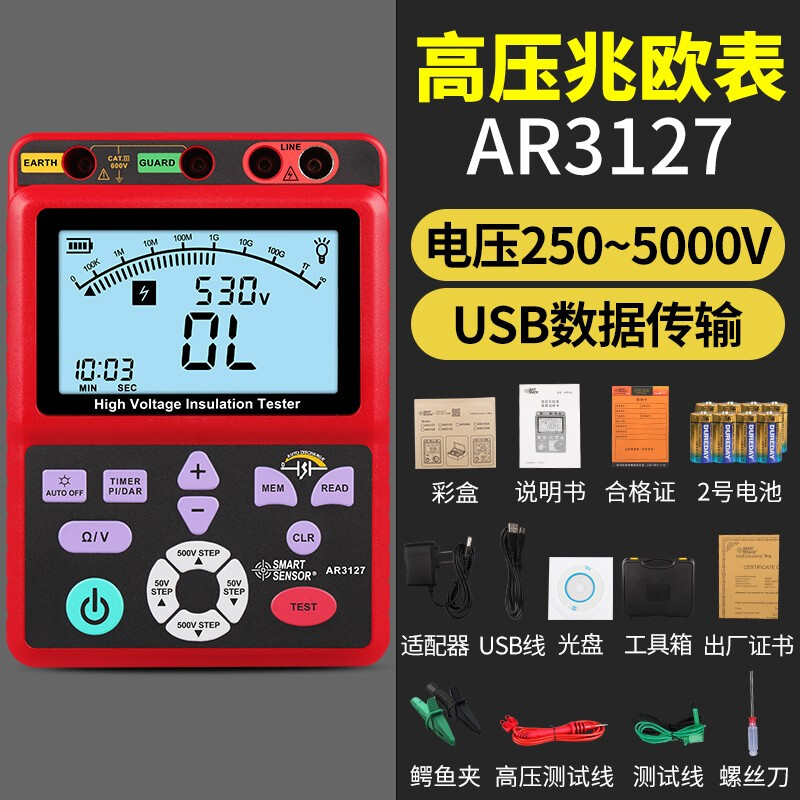 希玛 高压兆欧表电子摇表接地绝缘表电阻测试仪四档可调数显 AR3127(250V/500V/1000V)