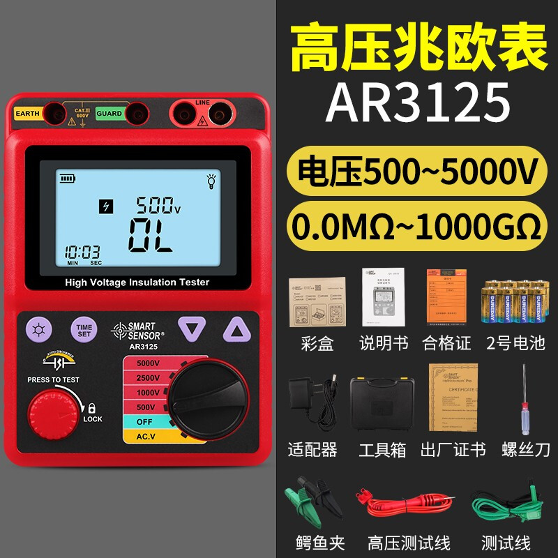 希玛 高压兆欧表电子摇表接地绝缘表电阻测试仪四档可调数显 AR3125(500V/1000V/2500V)