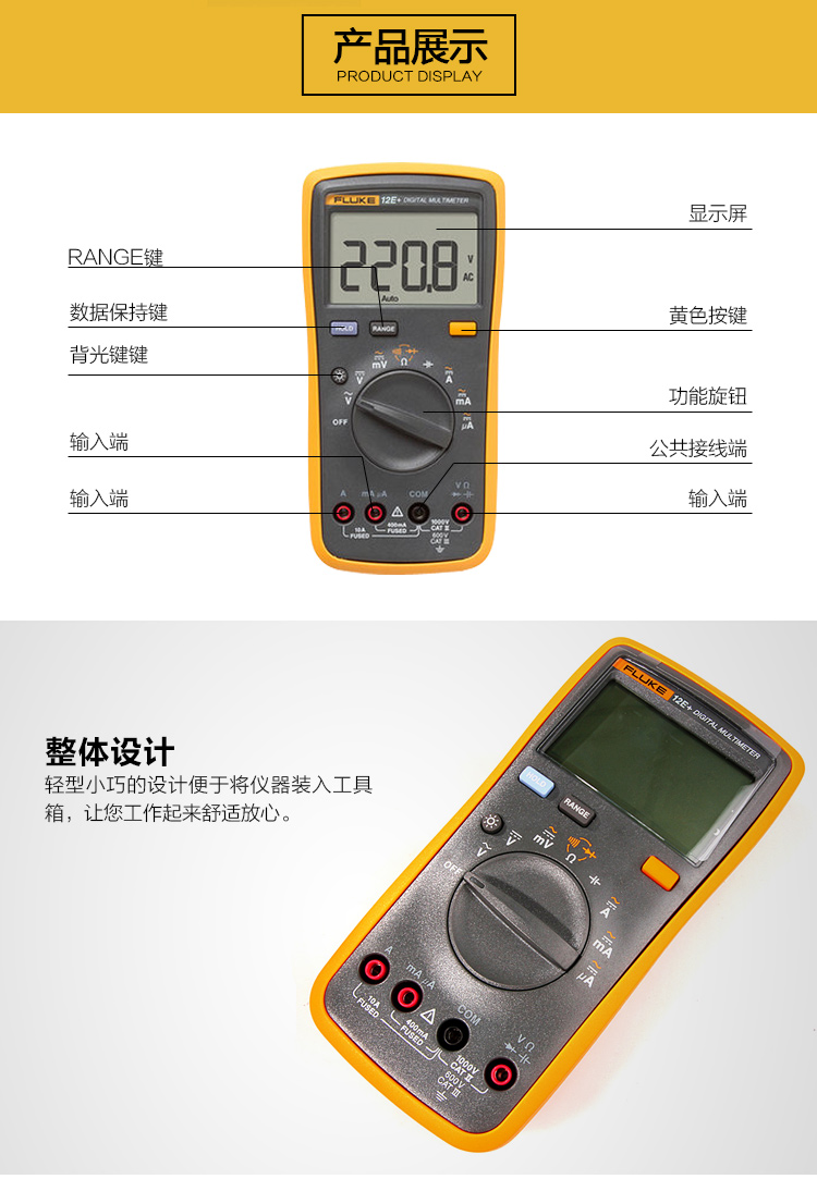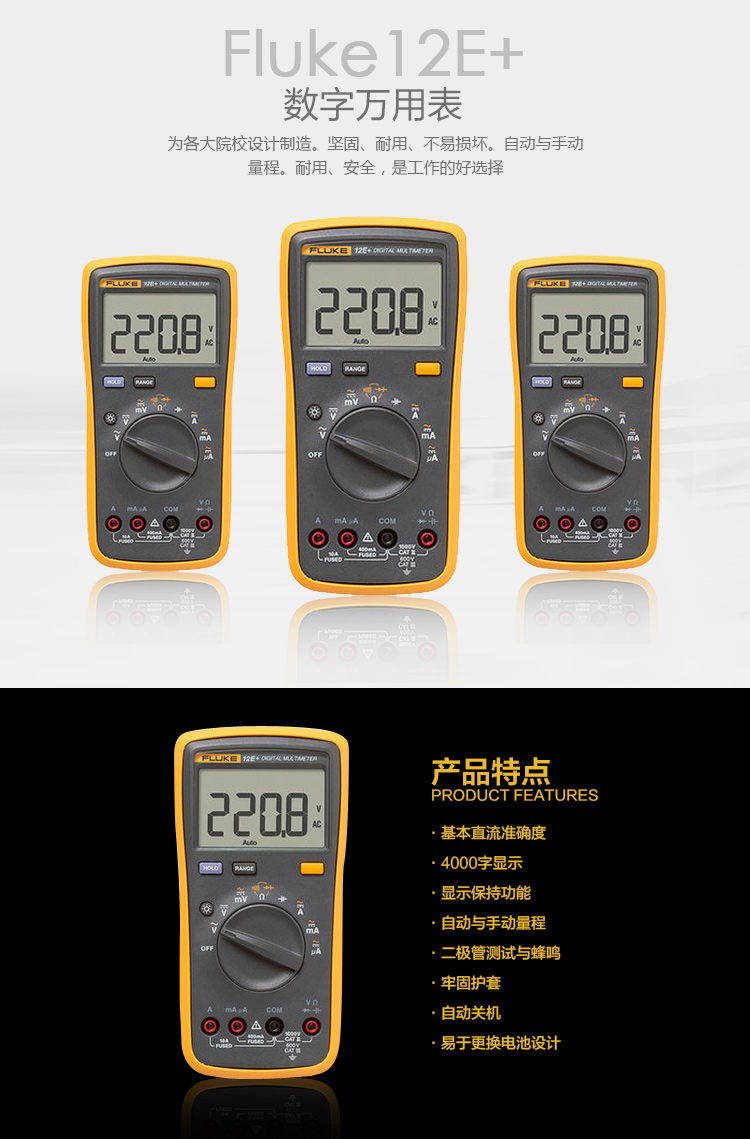 福禄克(FLUKE)12E+掌上型数字万用表自动量程多用表多功能仪器仪表