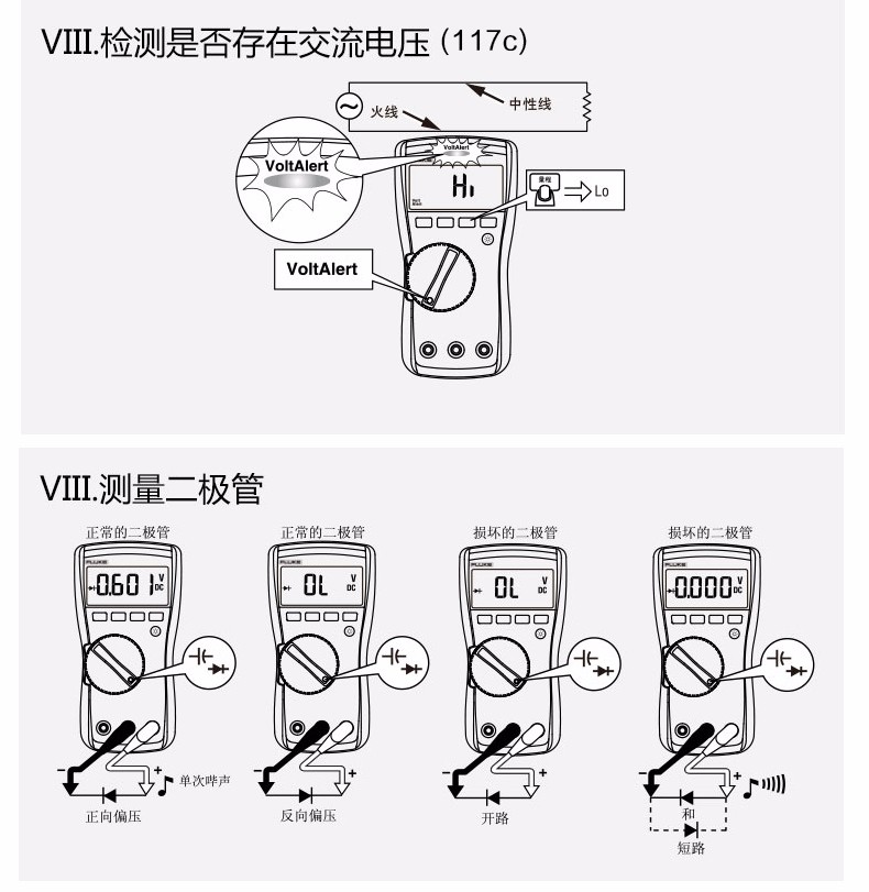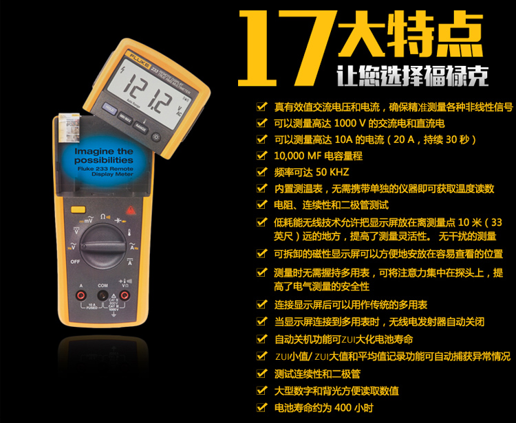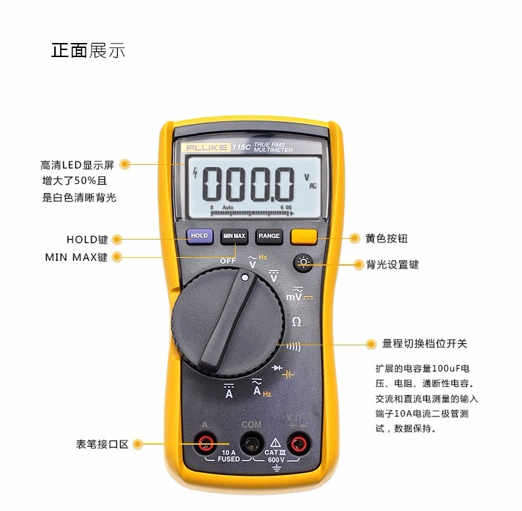 福禄克万用表FLUKE真有效值万用表高精度数字多用表自动量程 F115C交直流600V/10A