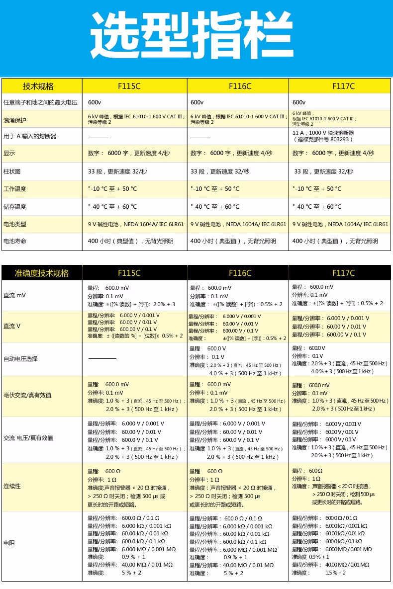 福禄克万用表FLUKE真有效值万用表高精度数字多用表自动量程 F116C交直流600V/200uA+温度测量