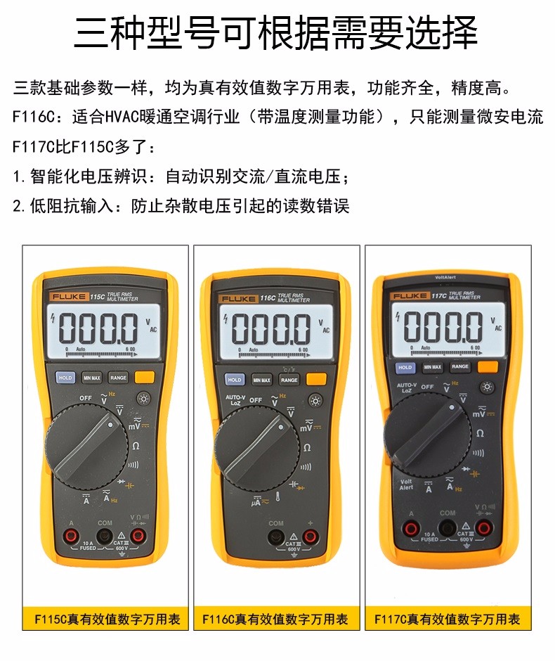 福禄克万用表FLUKE真有效值万用表高精度数字多用表自动量程 FLUKE117C标配+充电套装