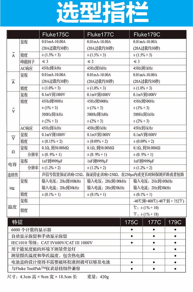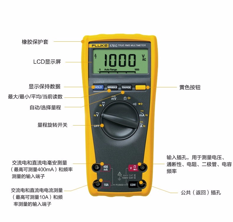 福禄克FLUKE-175C系列工业高精度真有效值数字万用表 自动量程 F175C真有效值钳表