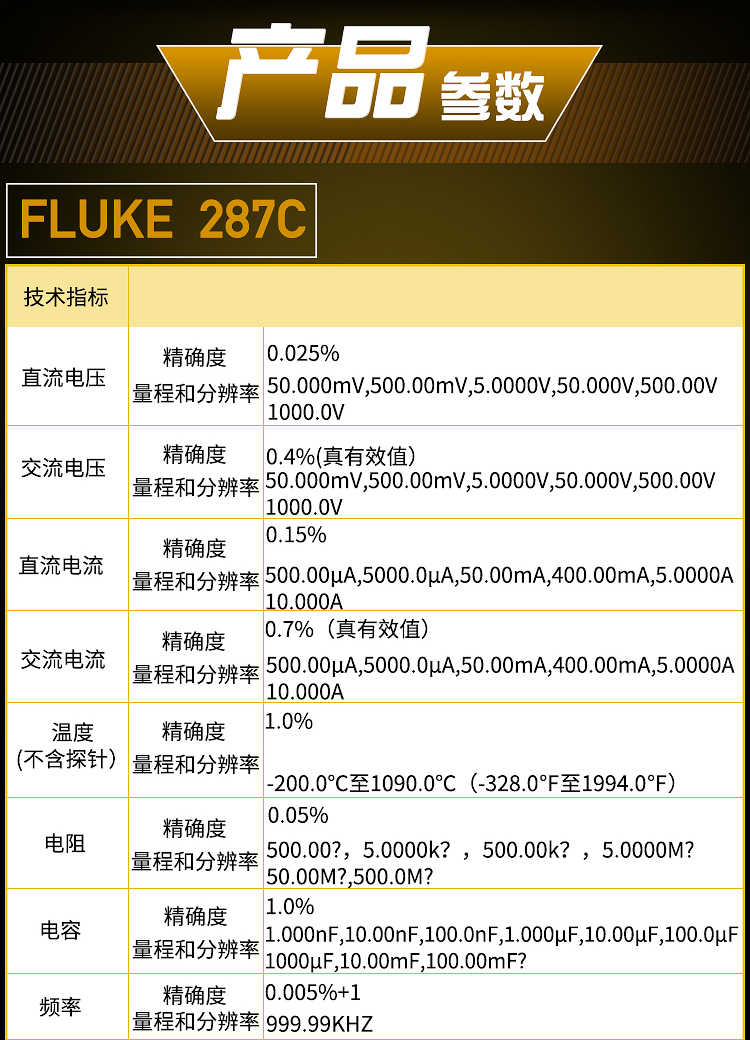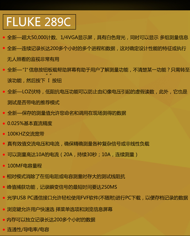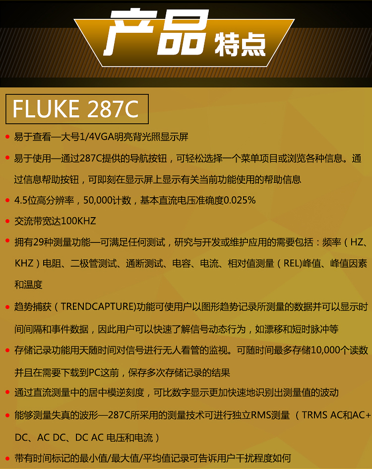 福禄克FLUKE 287C/F289C工业级真有效值数字万用表高精度记录型万能表 FLUKE 287C简称F287C