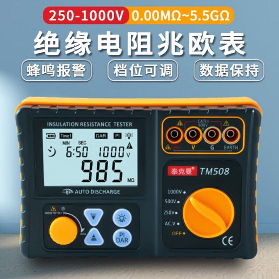 泰克曼TM508兆欧表电子摇表绝缘电阻测试仪数字绝缘电阻表1000V