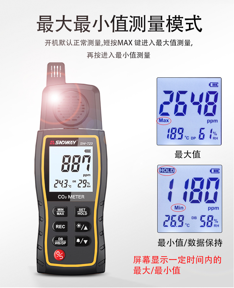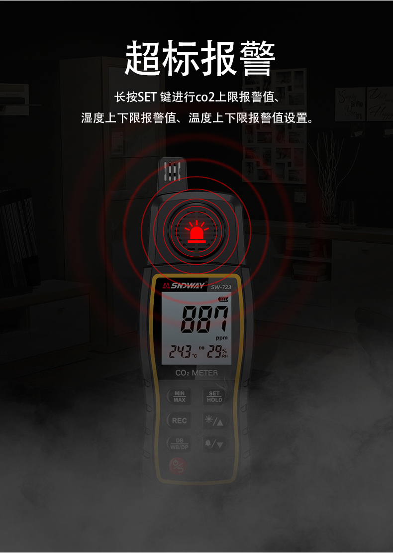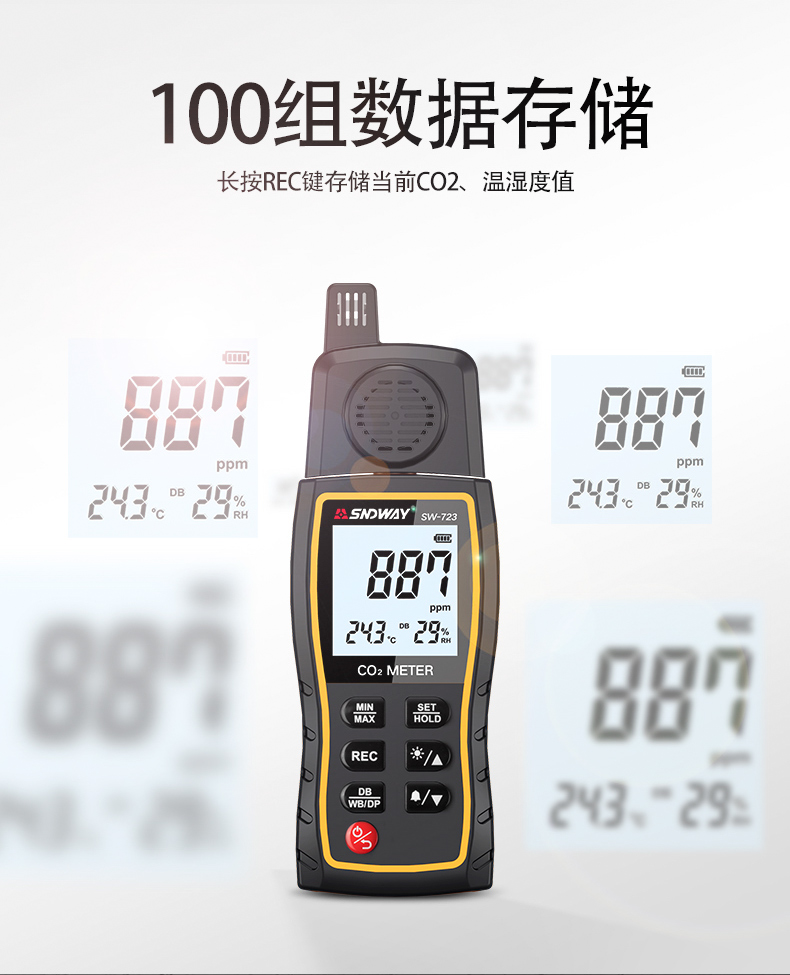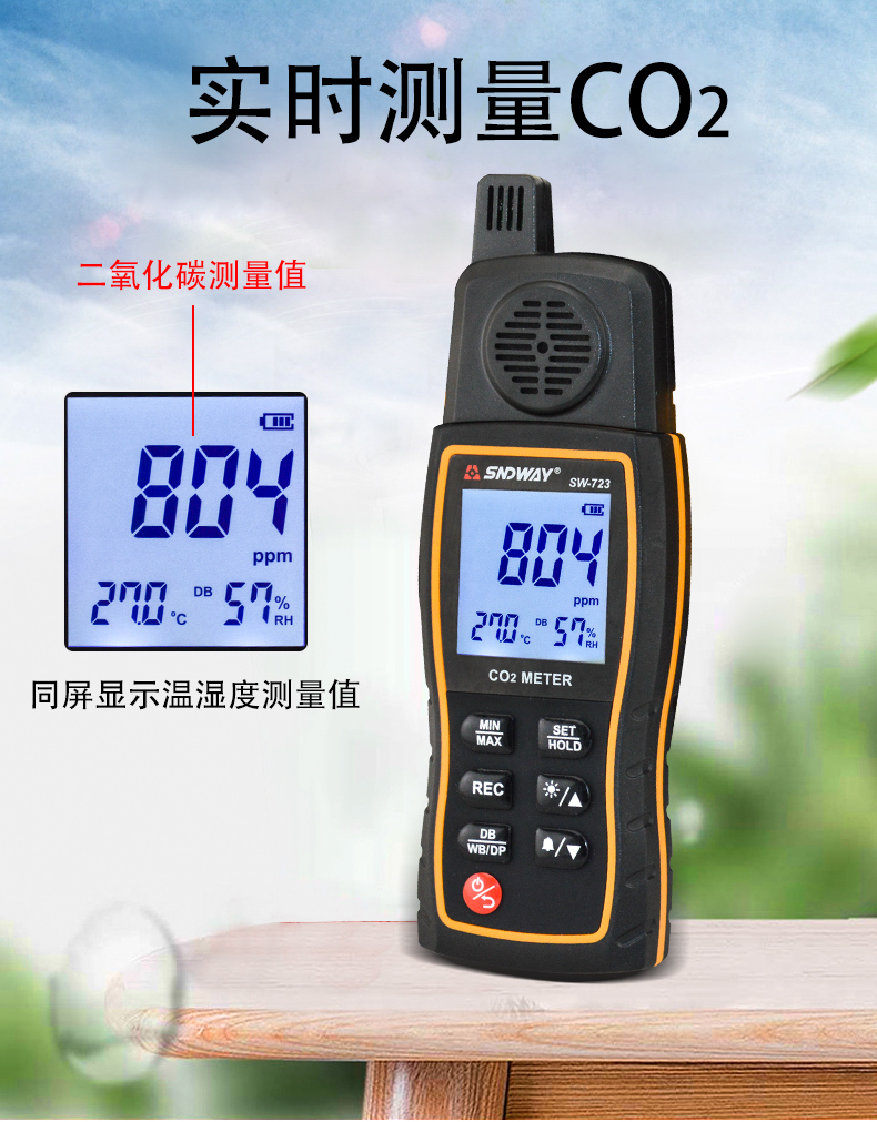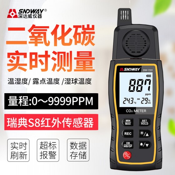 深达威二氧化碳检测仪红外CO2浓度测试仪手持家用大棚气体检测仪co2检测仪 SW-723