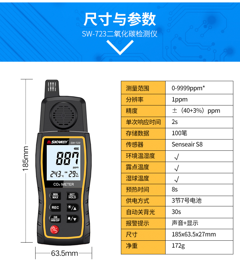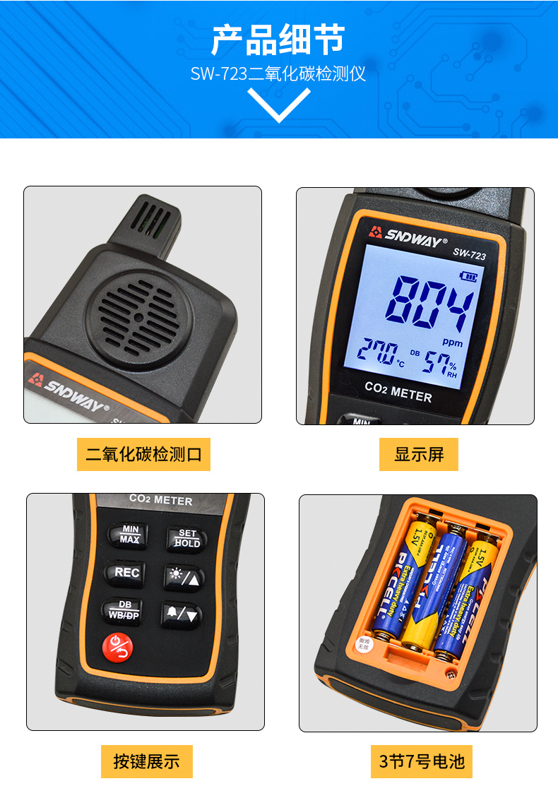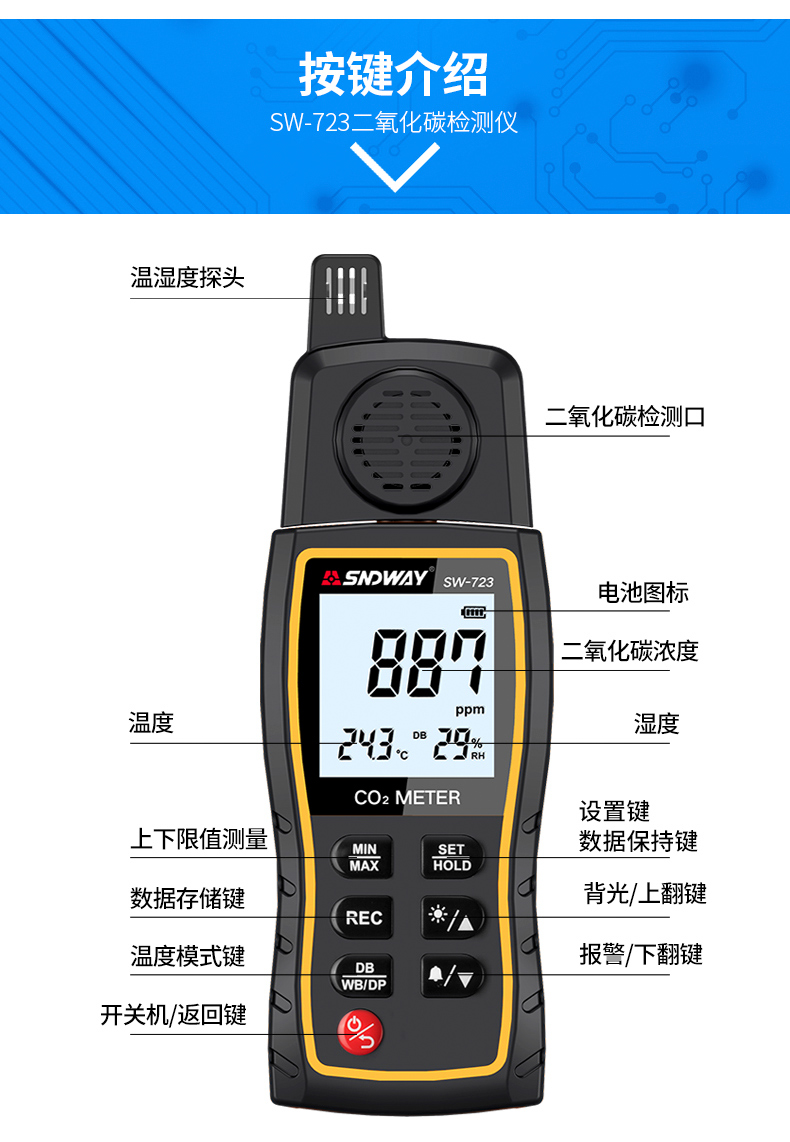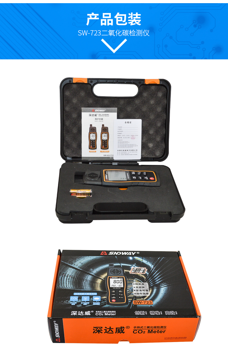 深达威二氧化碳检测仪红外CO2浓度测试仪手持家用大棚气体检测仪co2检测仪 SW-723