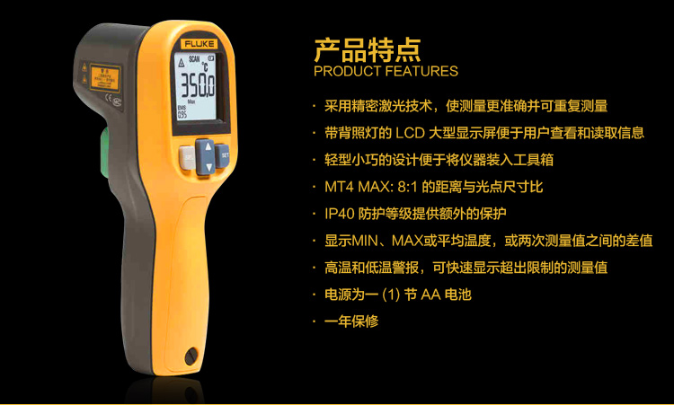 福禄克(FLUKE)MT4 MAX 红外测温仪 测温枪 电子温度计