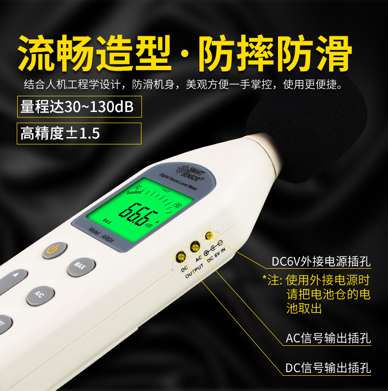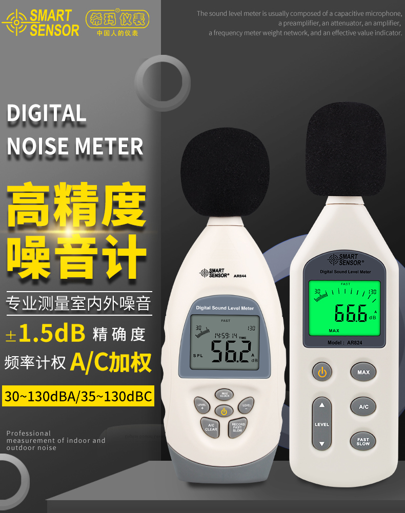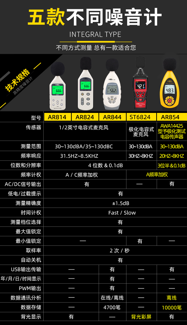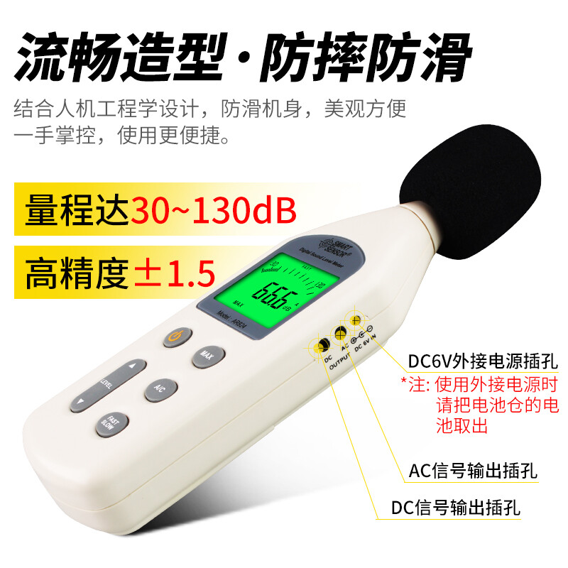 希玛AR824分贝仪噪声测试仪 AR854高精度声级计测声音检测器 ar814家用噪音计 AR814(9V电池版)