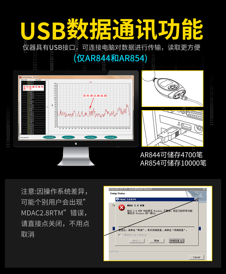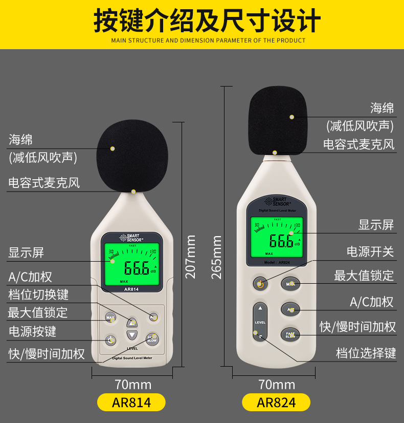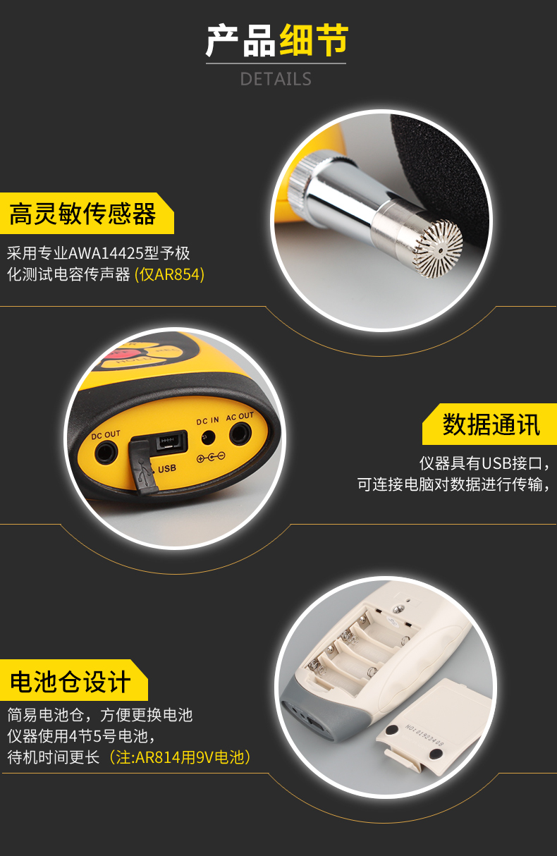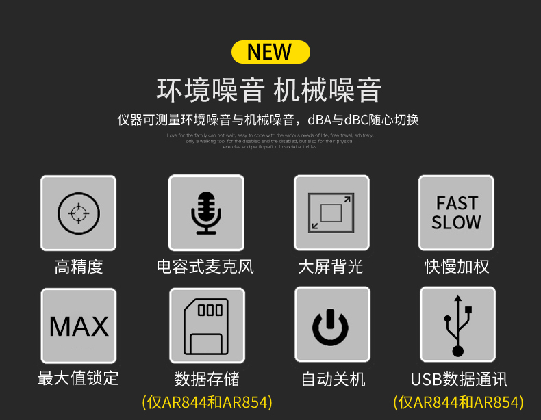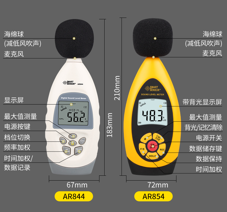 希玛AR824分贝仪噪声测试仪 AR854高精度声级计测声音检测器 ar814家用噪音计 AR814(9V电池版)
