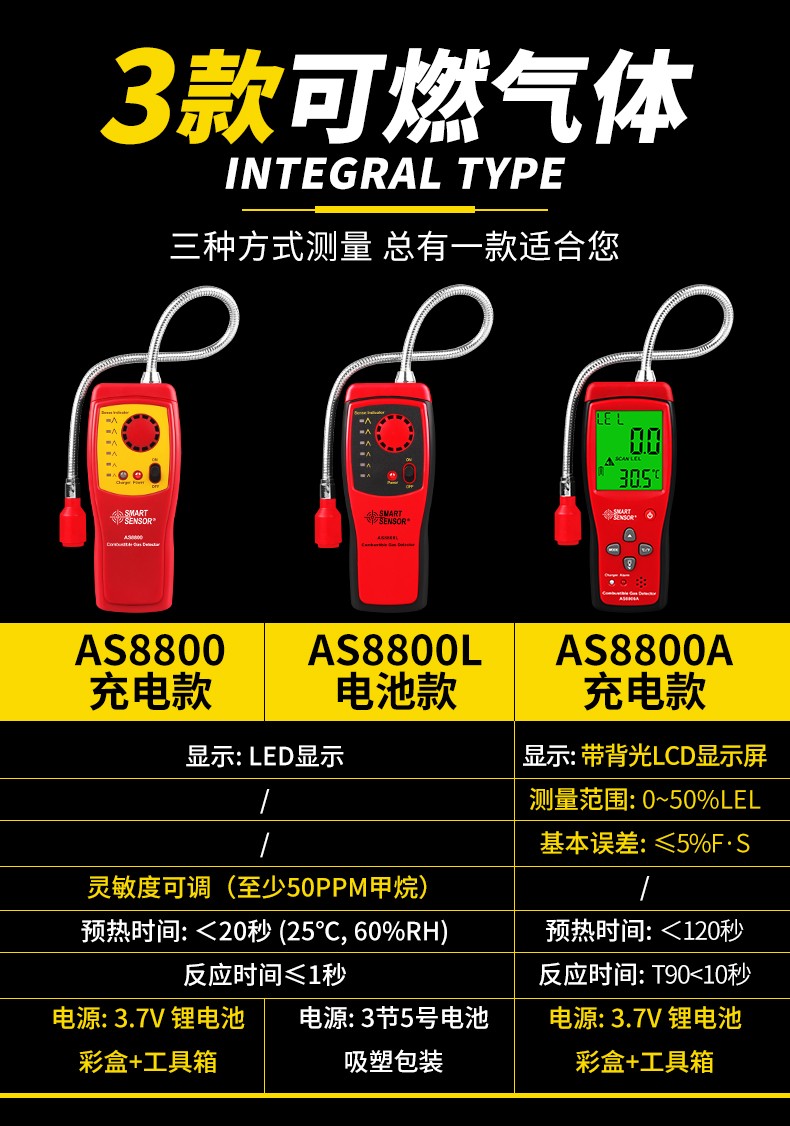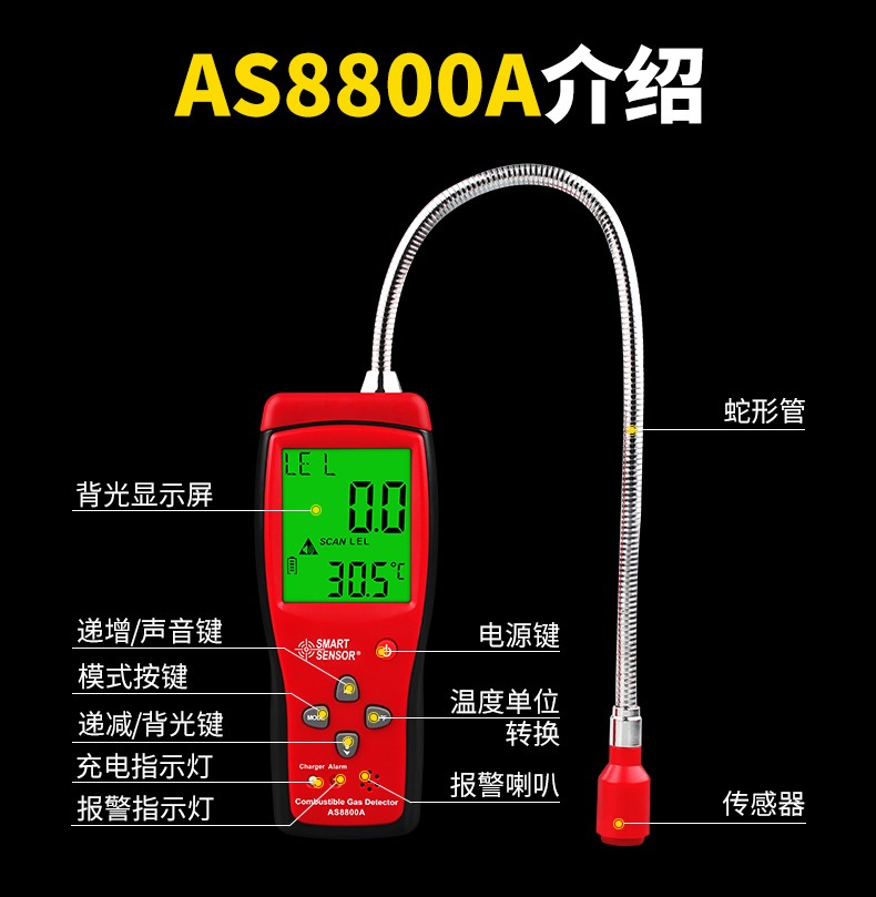 希玛 可燃气体检测仪AS8800 易燃气体天然气煤气沼气探测器高灵敏精度 可燃气体检漏仪 AS8800(充电款 灵敏度可调)