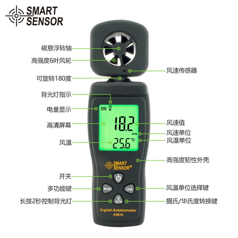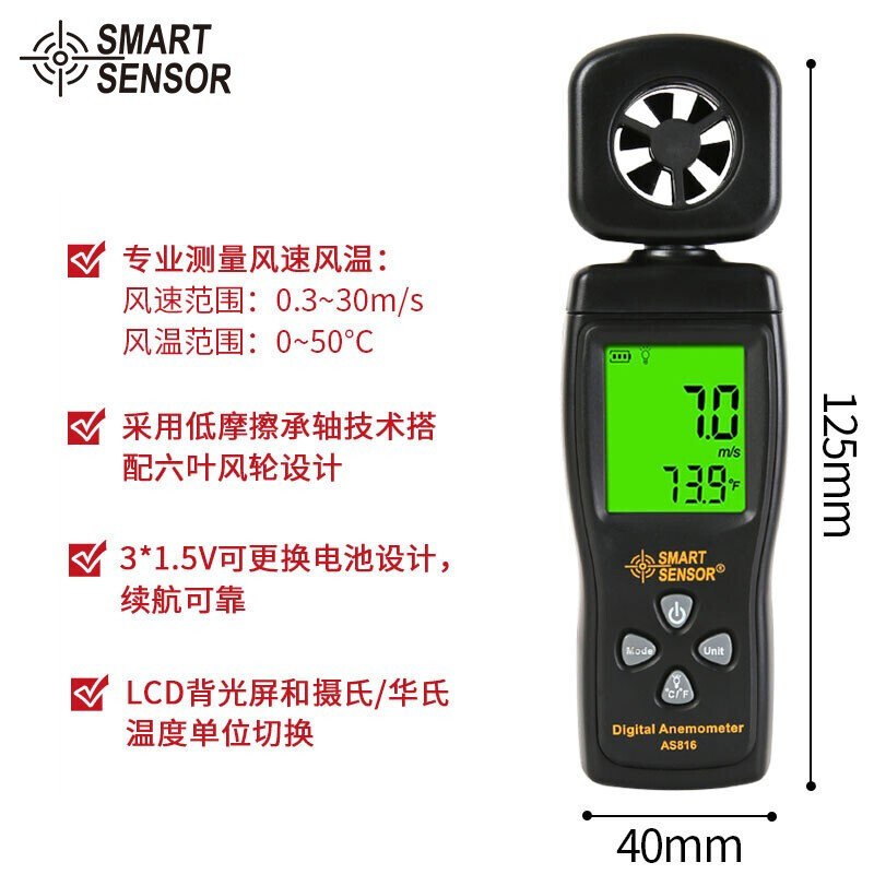 希玛 迷你型风速仪 高精度数字风速计 测风仪 风速风温风力测量仪AS816